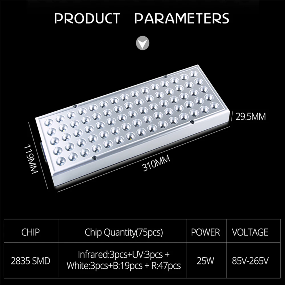 Для энергосбережения дизайн, просто потребляет около 25W 8W, 45W 14,5 W, намного лучше, чем тот же продукт на рынке. • Светодиодный Тип бусин: SMD2835 • Срок службы: около 50000 ч • Высокая производительность и низкое энергопотребление; • Светодиодная лампа для выращивания растений может заменить 3-5 раз мощность традиционной натриевой лампы высокого давления и других ламп, Энергосбережение 80%. • Прошли сертификацию CE, FCC, ROHS и PSE, безопасность, защиту окружающей среды, отсутствие загрязнения и вредных веществ. • Подходит для: широко используется в теплицах, заводах, тепличных хозяйствах, цветочном хозяйстве, комнатных садах, водорастворимом разведении, выращивании трубопроводов, фермах, растениях в горшках, опрыскивании растений, культура ткани и так далее 25 Вт 75LED / 45 Вт 144LED Количество СВЕТОДИОДНЫЙ: 75 шт/144 шт Размер (Д * В): 25 Вт 75leds --- 31*11,9*29,5 см 45 Вт 144 светодиодов, американский стандарт ---- 25,2*25,2*29,5 см 75 светодиодов цвет лампы: 3 * инфракрасный свет + 3 * УФ + 3 * белый свет + 18 * синий + 48 * красный 144 светодиодных лампочек Цвет: 6 * инфракрасный свет + 6 * УФ + 6 * белый свет + 36 * синий + 90 * красный Информация об упаковке: 1 × растительный светильник 1 × Кабель питания с вилкой Описание продукта: 【FULL SPECTRUM】 Светодиодная лампа для выращивания имеет 75/144 мощных светодиодов, которые привлекают ватт энергии для выращивания ваших растений красными, синими, белыми, ИК и УФ, что увеличит их фотосинтез, увеличивая рост и выход, соответствуют пикам поглощения хлорофилла и значительно улучшат фотосинтез ваших растений. 【Heat dissipation】this светодиодный завод светильник использует 45 Вт мощности и производит очень мало тепла, таким образом, в отличие от обычных светильник лампы, разрядных ламп высокой интенсивности или люминесцентных ламп, что означает, что вы можете наслаждаться Большая экономия на ваш счет за электричество. 【Длительный срок службы 】с 50000 часами срока службы, этот светодиодный панель для выращивания поставляется с 4 сильными проводами и крючком для легкой, безопасной установки, что делает его идеальным для вашей теплицы или гостиной. Таким образом, сегодня легко начать свой собственный теплый дом или растительную ферму и заработать большой доллар от фантастических цветов, овощей и растений. Обратите внимание 1. Пожалуйста, отключите питание перед установкой, чтобы предотвратить Электрический шок, Избегайте использования руки, чтобы прикоснуться к поверхности лампы. 2. Используйте, чтобы убедиться, что продукт используется в нормальной среде. 3. Избегайте установки источников тепла и горячего пара, коррозионного газа, чтобы избежать воздействия жизни. 4. Перед установкой убедитесь, что положение установки может выдерживать в 10 раз больше веса продукта. 5. Установка не является вибрацией, не качается, не подвержена пожару.