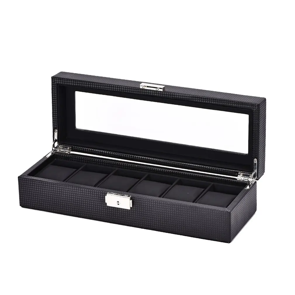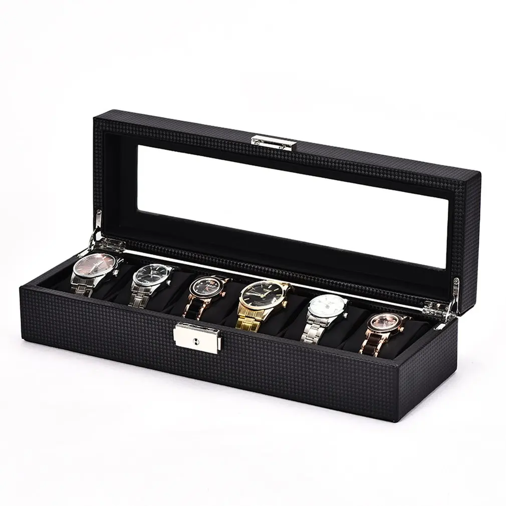6/10/12 Сетка Коробка для часов черный углеродное волокно внешняя искусственная кожа внутри Подушка Чехол для часов Органайзер держатель для наручных часов для дропшиппинга