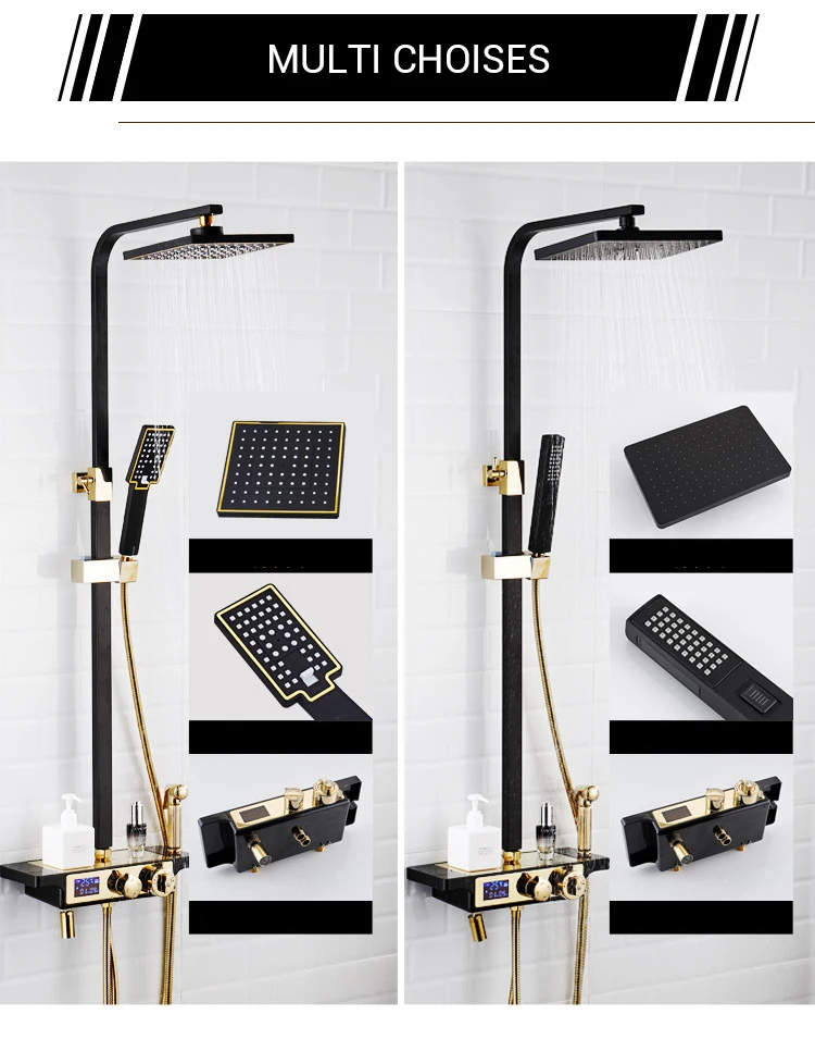 Термостатическая Душевая система, настенный светодиодный набор для душа, квадратный спрей, спа-ванна, смеситель для горячей и холодной воды