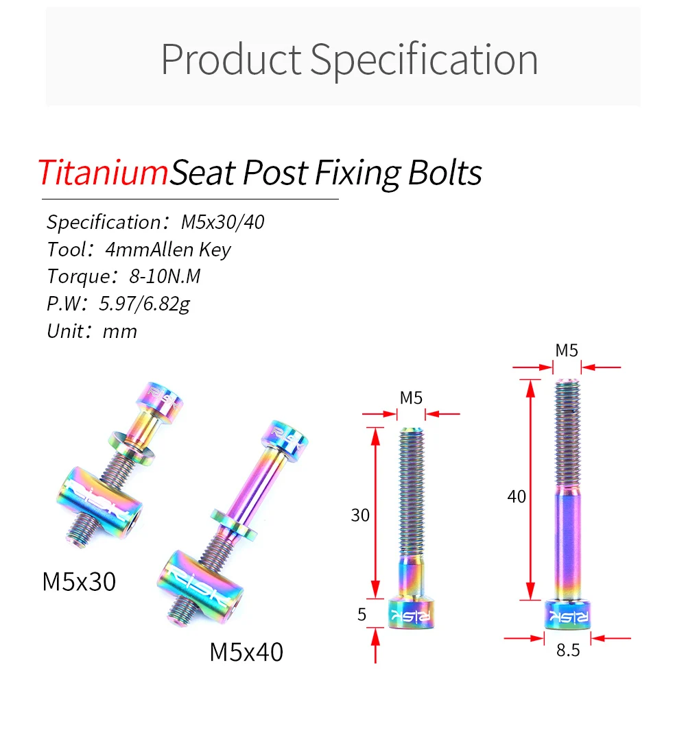 Опасности 2 шт. велосипедный Подседельный штырь Титан сплав фиксированные болты M5 * 30/40 мм MTB дорожный велосипед Подседельный штырь для горного велосипеда седло фиксированный TC4 винты Радуга золото