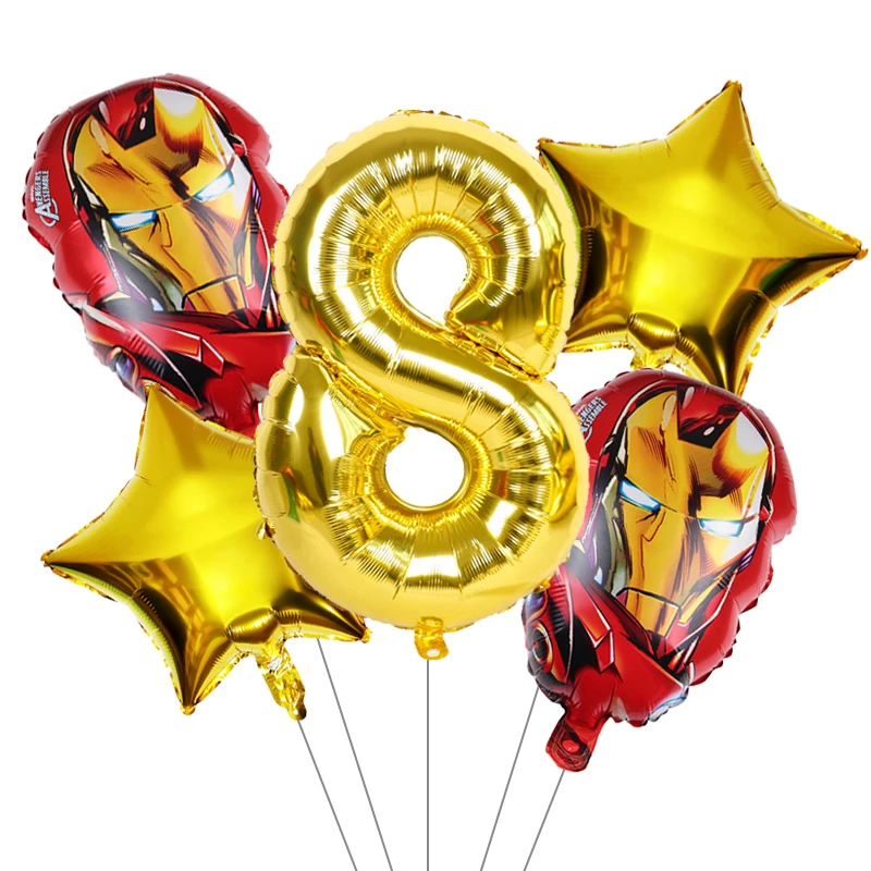 Тип продукта: набор фольгированных воздушных шаров для дня рождения супергероя Цвет: как показано на изображении Количество: 1 комплект Материал: алюминиевая фольга Упаковка: пакет OPP Применение: вечерние рождения, день детей, детские игрушки, свадебные украшения, украшения событий, праздничные украшения и т. д.