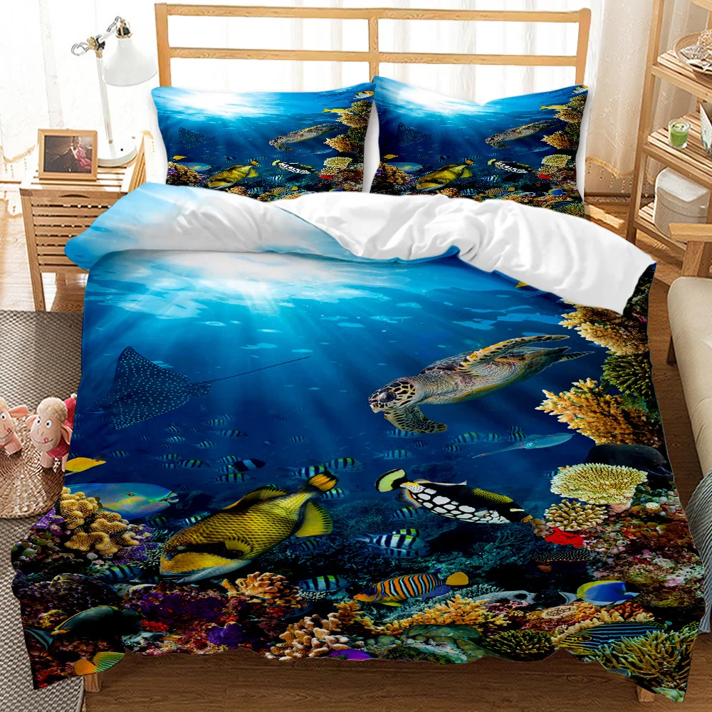 Комплект постельного белья с золотой рыбкой, дизайнерский пододеяльник с синим морем и животными, покрывало для кровати 150, комфортный комплект, Королевский размер, декор для спальни, рождественский подарок