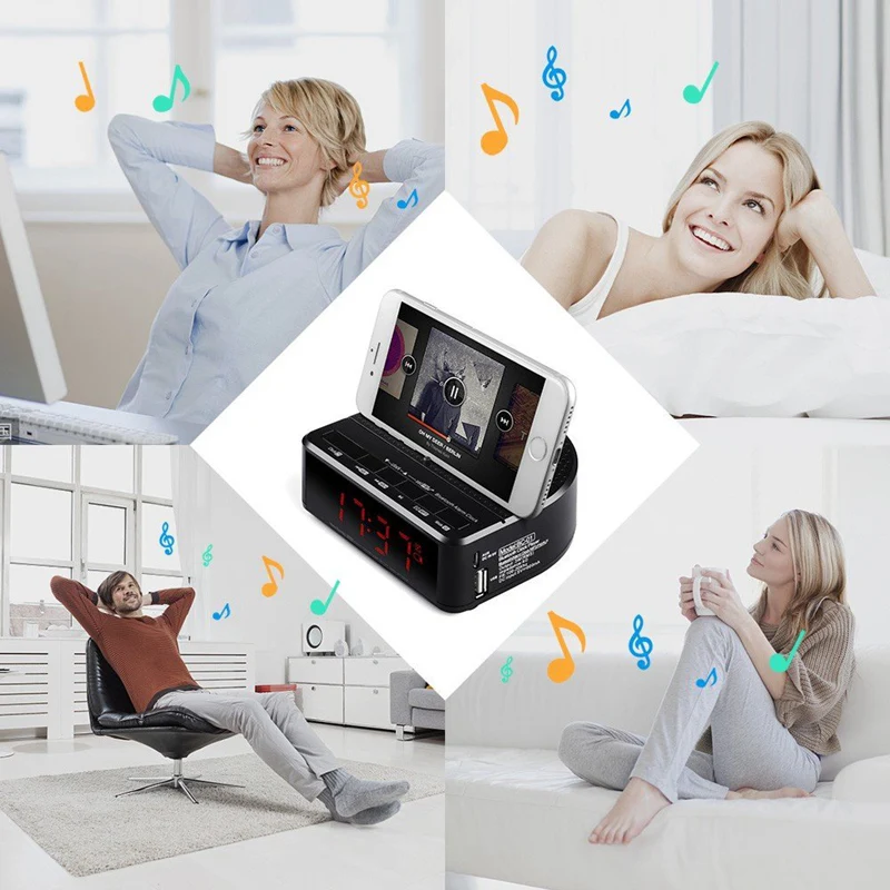 Цифровой Будильник радио с bluetooth-динамиком, дисплей с красной цифрой с 2 диммером, fm-радио, USB порт прикроватный светодиодный будильник.