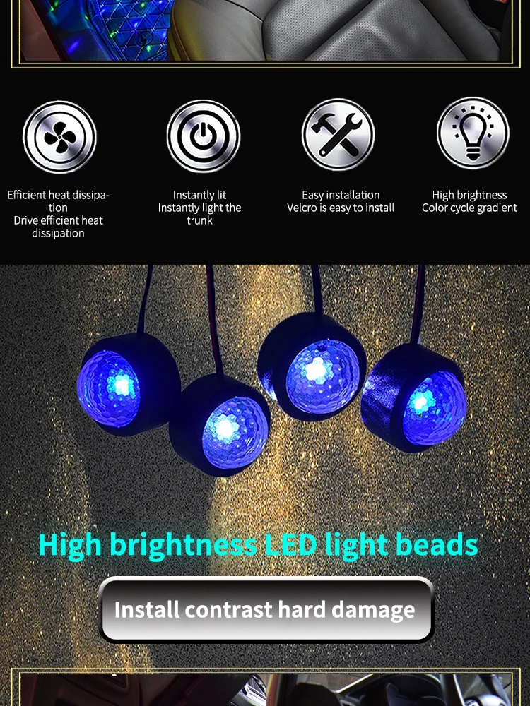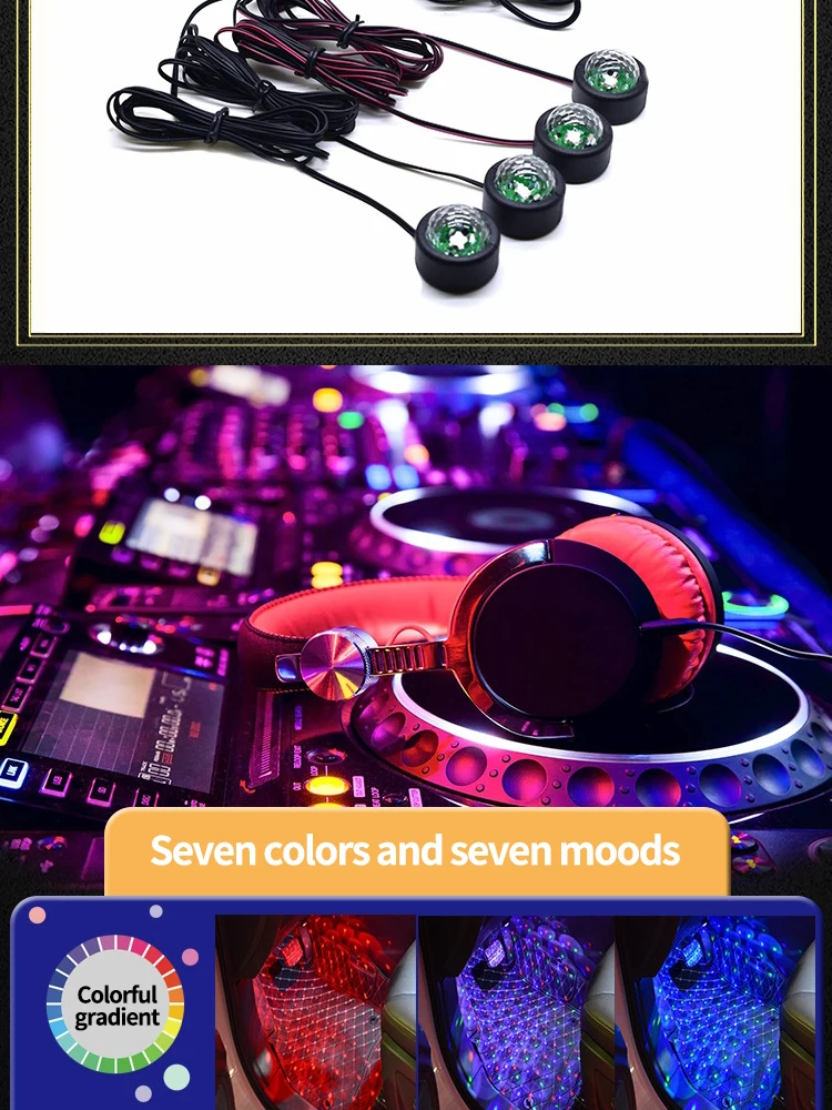 1. Новая и усовершенствованная Минималистичная модель, мгновенно подключается и светильник с usb-кабелем, неразрушающая установка, простая и удобная; Легко создает атмосферу стильного автомобиля; 2. Фитиль высокой яркости, с многоугольной круглой кристаллической лампой, не повреждает глаза и достаточно яркий; 3. Перетащите четыре круглых ножных воздушных лампы, с двухсторонней клейкой лентой на спине, легко установить, никаких следов не осталось; 4, семь цветов в режиме RGB, семь градиентов цветового цикла и семь вариантов голосового управления на ваш выбор; 5. Общая модель, неограниченное количество транспортных средств; В машине вы можете пообщаться с друзьями, как диджей.