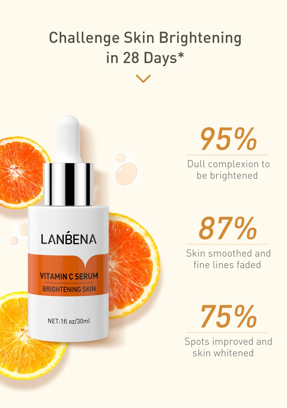 LANBENA Витамин С Сыворотка осветляющая кожу Омолаживающая отбеливающая выцветание темное пятно ровные тонкие линии Антивозрастная эссенция для лица 30 мл