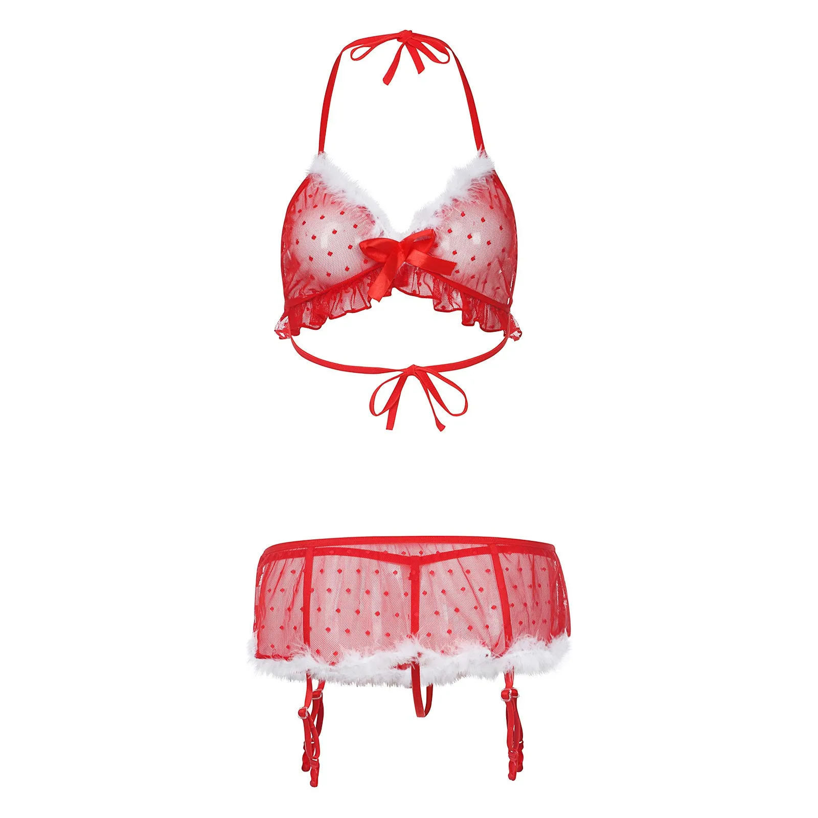 Женское сексуальное рождественское нижнее белье с v-образным вырезом, подвязки, одежда для сна, стринги, нижнее белье, бюстгальтер