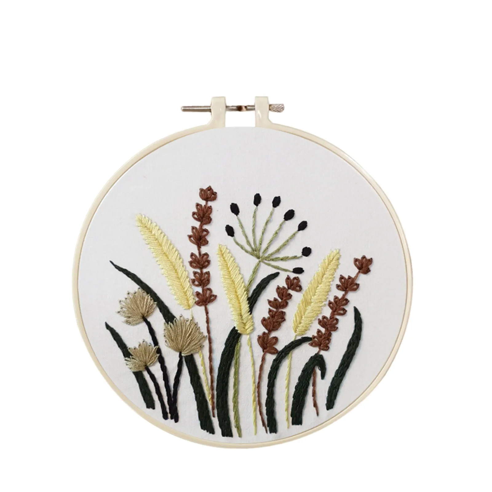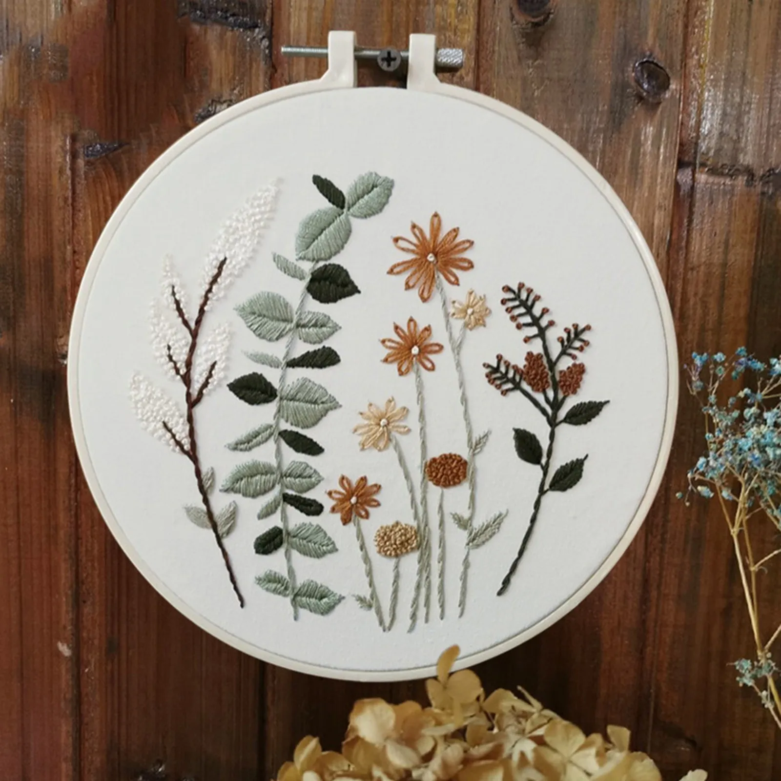 Набор для самостоятельной вышивки с растительным цветочным узором и бамбуковым обручем для вышивки, цветные нитки и инструменты, Набор для вышивки крестиком для художественного ремесла