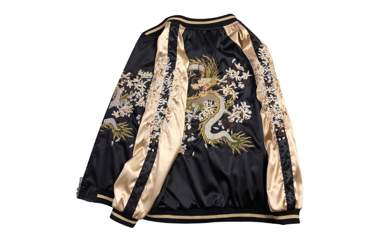 Золотая Роскошная вышитая мужская двусторонняя куртка, сатиновая Сувенирная Куртка Yokosuka, женская уличная Осенняя мужская бейсбольная одежда