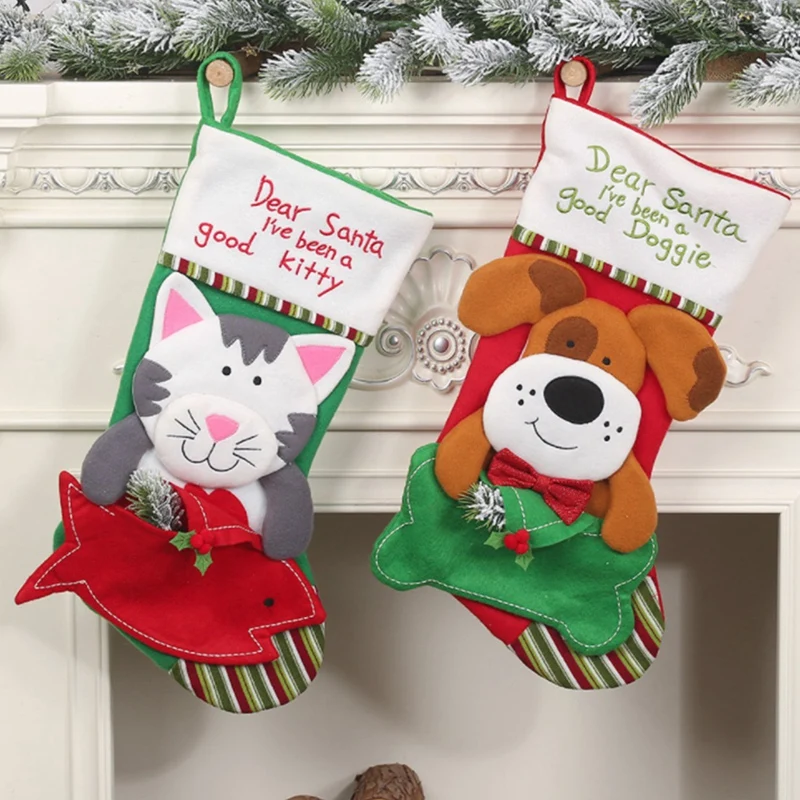 Рождественские чулки для домашних животных, 2 упаковки рождественских чулок для собак и кошек, рождественские чулки с дополнительным карманом для домашних животных
