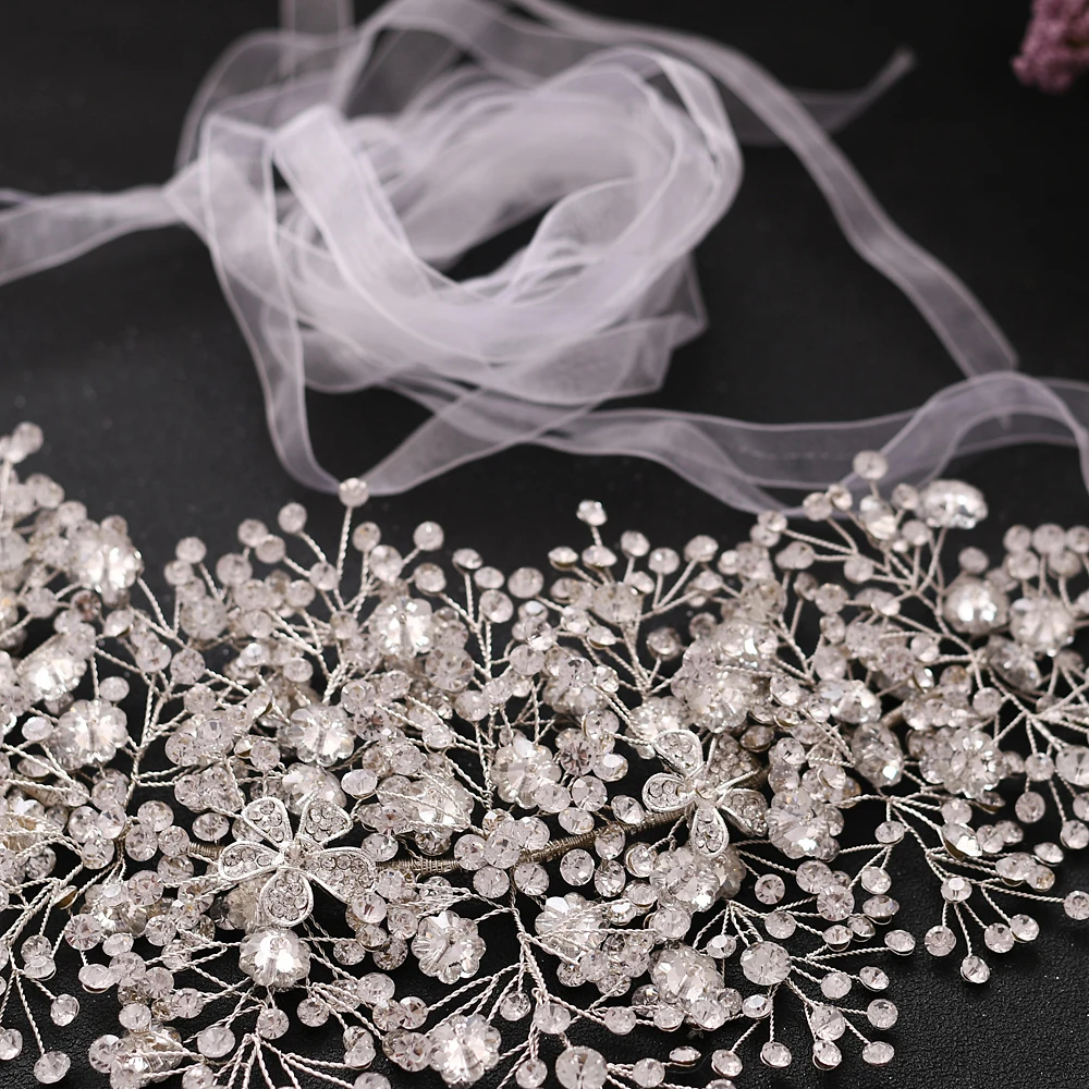 ZMSH240-S, свадебное платье, пояс, стразы, Серебрянные цветы, для платья, свадебные Ремни, для выпускного, женские ремни, модные аксессуары для невесты
