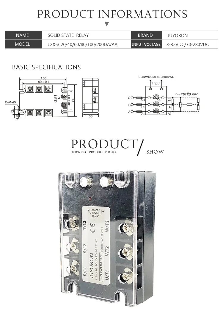 3-фазное твердотельное реле переменного тока SSR 25 DA/AA 3-32 в пост. Тока/70-280 В переменного тока, трехфазный модульный переключатель выходного сигнала 24-480 В переменного тока для системы автоматизации