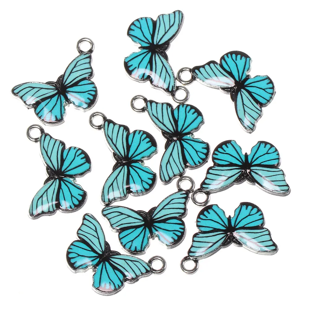 10 PCS Gift Earrings Accessories DIY Material Necklace Bracelet Handmade Jewelry Blue Enamel Butterfly Charms Animal Pendants