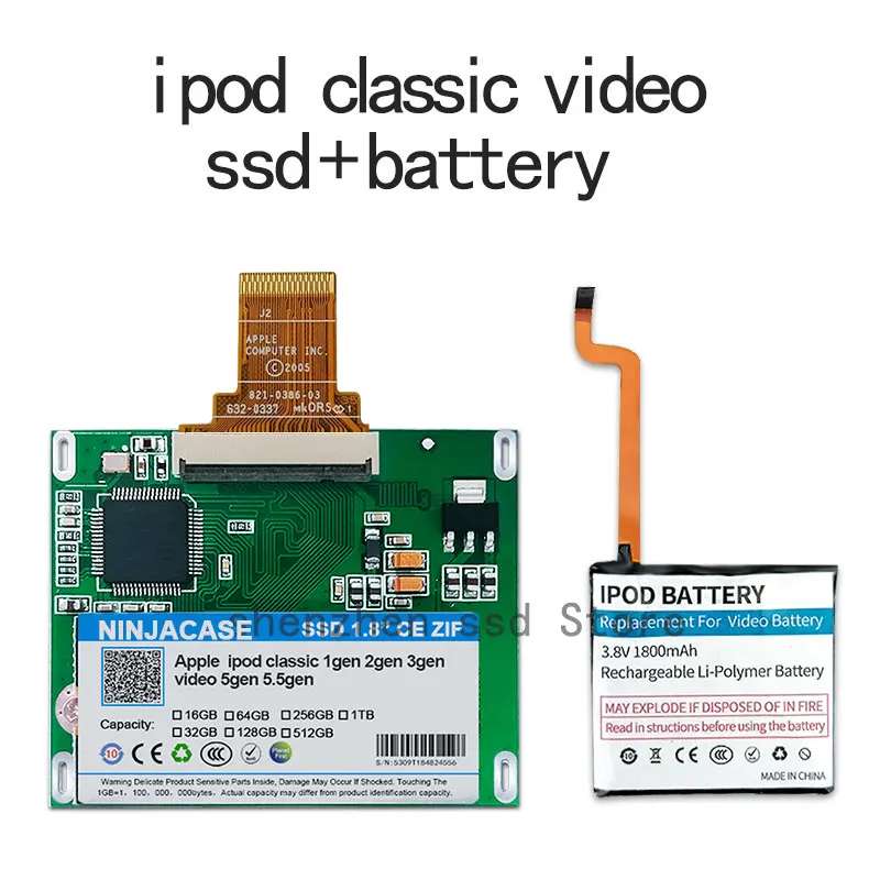 Этот SSD 256 ГБ и 512 ГБ подходит только для iPod video (30 Гб, 60 Гб, 80 Гб) и iPod classic 7-го поколения (160 Гб).