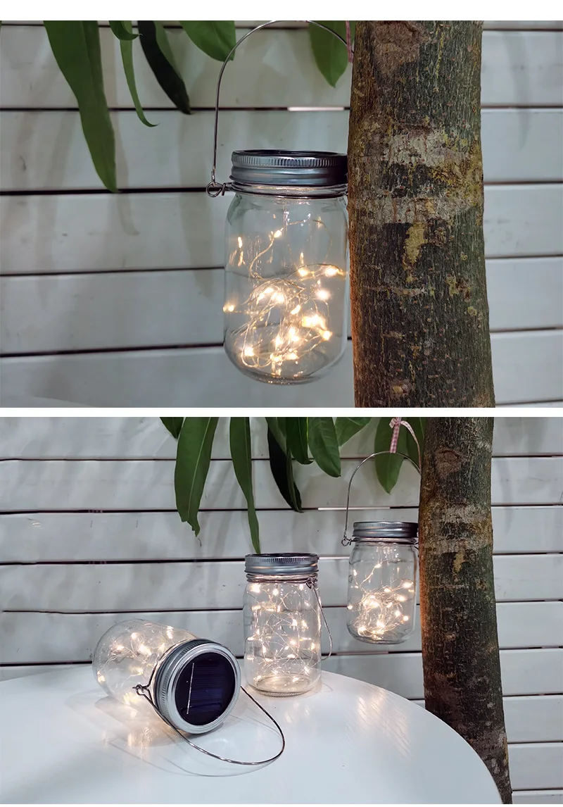 Солнечный Мощность ed светодиодный фея стеклянная банка с завинчивающейся крышкой Фонари, с 2 V 70mA эффективные солнечные панели, 1,2 V 600mA Перезаряжаемые AAA Батарея в комплекте. Если не яркий день, батарейки AAA могут использоваться в качестве резервного питания.