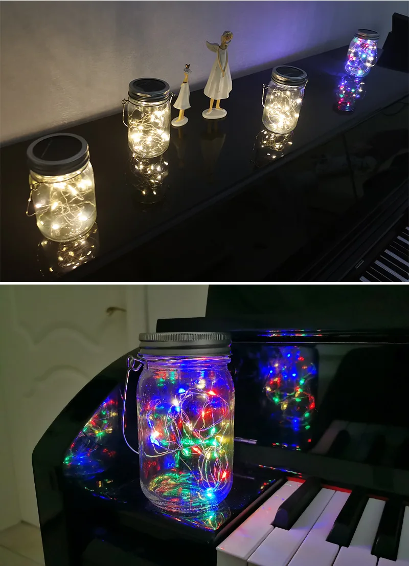 Солнечное освещение Mason Jar, 2 м, 20 светодиодных гирлянд, сказочные светящиеся огни, крытая уличная водонепроницаемая лампа на солнечных батареях для патио, лужайки, сада, вечерние
