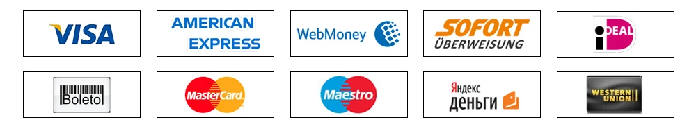 Мы принимаем VISA, кредитные карты, Mastercard, WebMoney, Boleto, Qiwi wallet и т. Д.