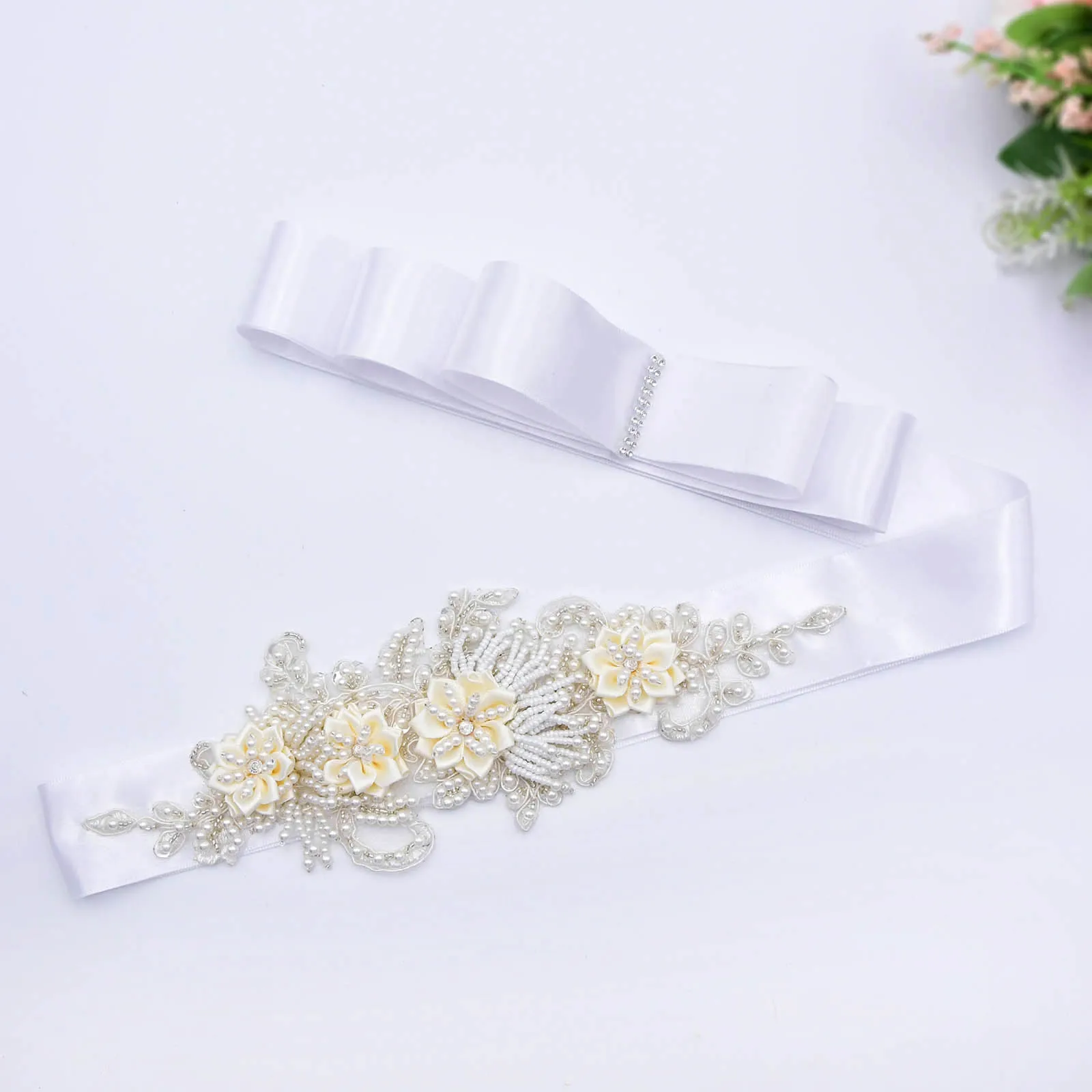 S346 роскошный свадебный пояс для невест Белый цветок лента невесты для беременных аксессуар пояс с жемчугом для женщин цвет слоновой кости Женский пояс