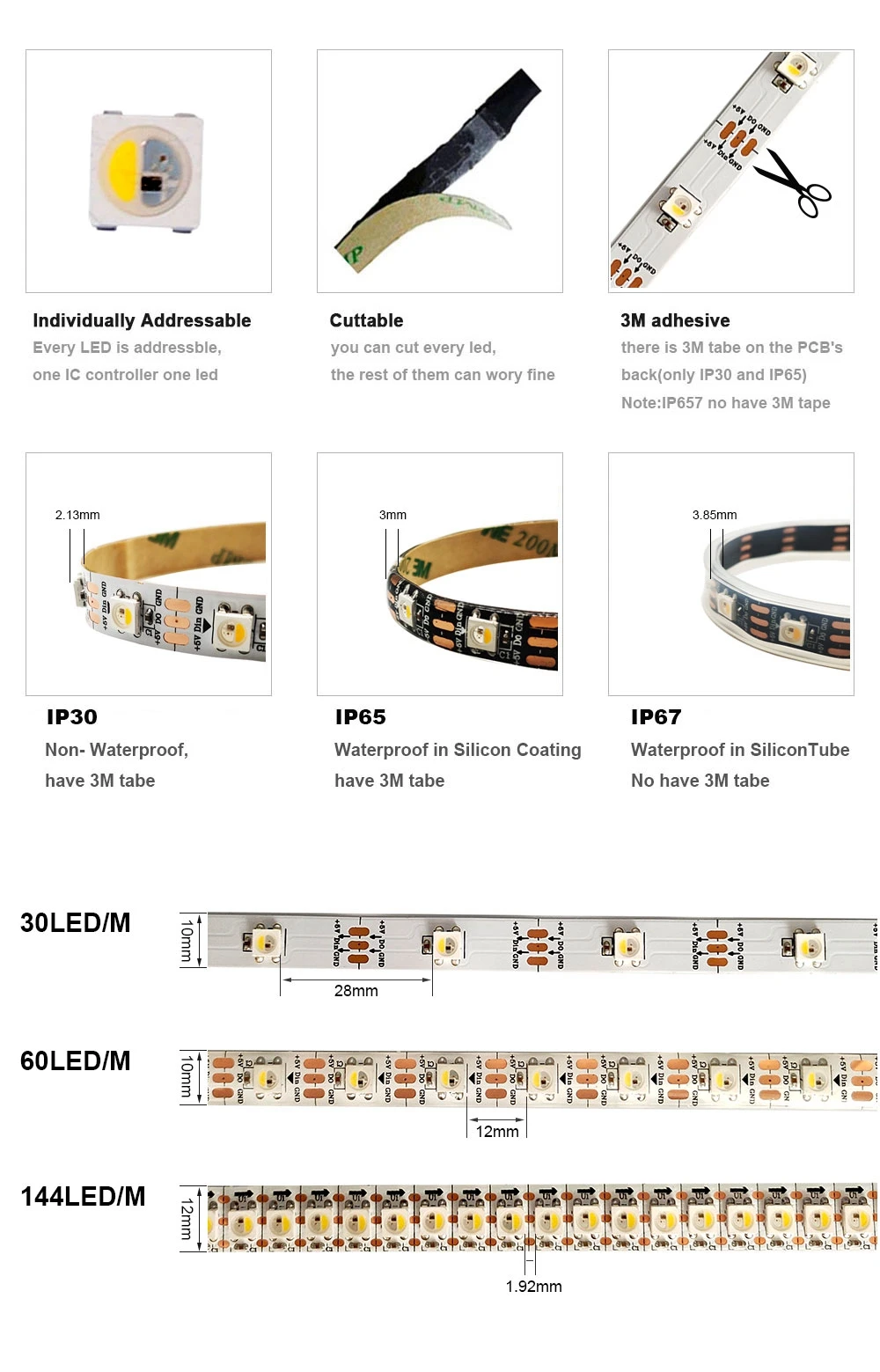Ск6812Особенность:Напряжение (постоянный ток):5 ВИсточник светодиодный: встроенный Чипсет SK6812 50smd RGBWТип ИС: SK6812IC: (1 IC дисков 1 светодиодный чип)Разрезаемый: Каждый светодиодный можно разрезатьСерый класс: 256Биты/Цвет: 8-биты/цветЦвет s: полноцветный RGB, меняющий цвет мечтыЦвет: RGBW (WW 2700-3000K ; CW 6000-6500K)