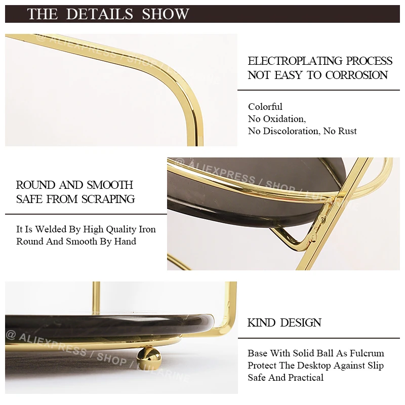 Двойная полка для ювелирных изделий, мульти-угол отображения ваших сережек, ювелирных ожерелья, косметики, продуктов по уходу за кожей и так далее. Достаточно места, чтобы держать, так что ваши товары более аккуратные, идеальный дисплей, чтобы не найти ваши ювелирные изделия проблемы. Одна вещь многоцелевой, можно положить все виды вещей. С использованием натурального мрамора, каждый кусок выбран, случайная текстура, ровный уровень, может быть удален, очень удобно. Высокое качество гальванического процесса, без перфорации Поместите гладко Не скользит и не трясет Идеальный выбор подарка: держатель для сережек не только украшает ваш стол, но и может быть помещен на ваш прикроватный столик и рамку шкафа. Отлично подходит для ваших спален, гостиных бутиков и магазинов. Этот органайзер для украшений может стать отличным подарком для любой девушки или женщины в вашем списке.