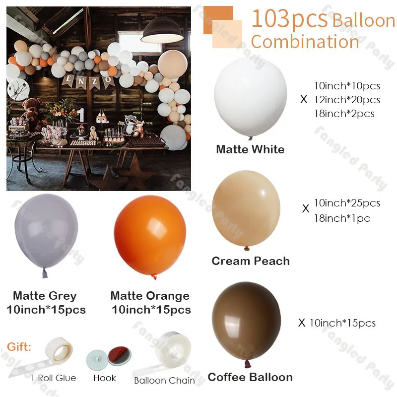 103 шт., белый кремовый персиковый новогодний шар, гирлянда, оранжевый, серый, арочный комплект, Свадебная вечеринка, день рождения, детский душ, воздушный шар, АРКА, декоры