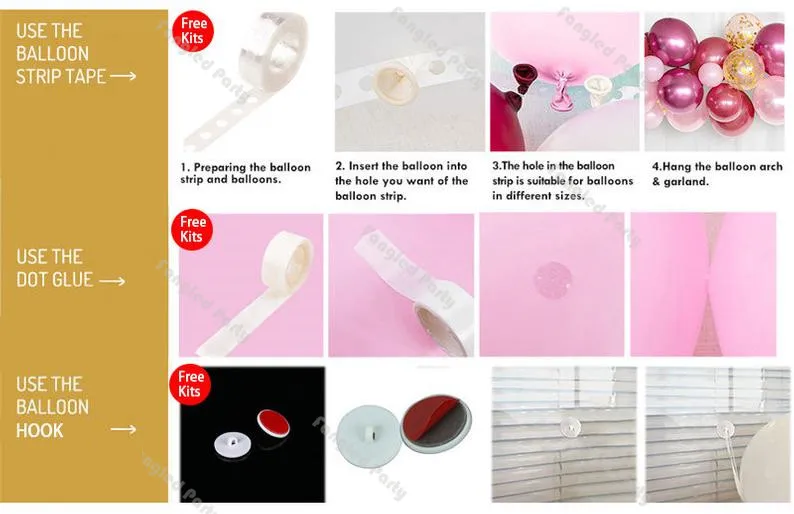 1 рулон клея точки, воздушный шар цепи, крюк