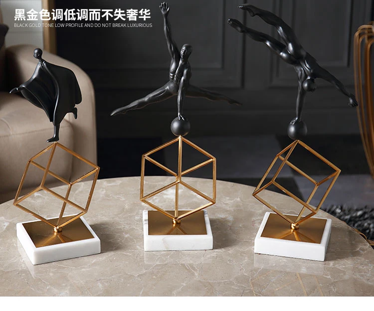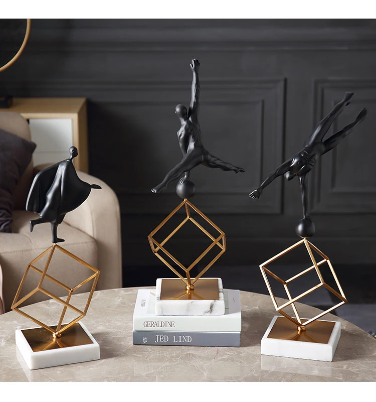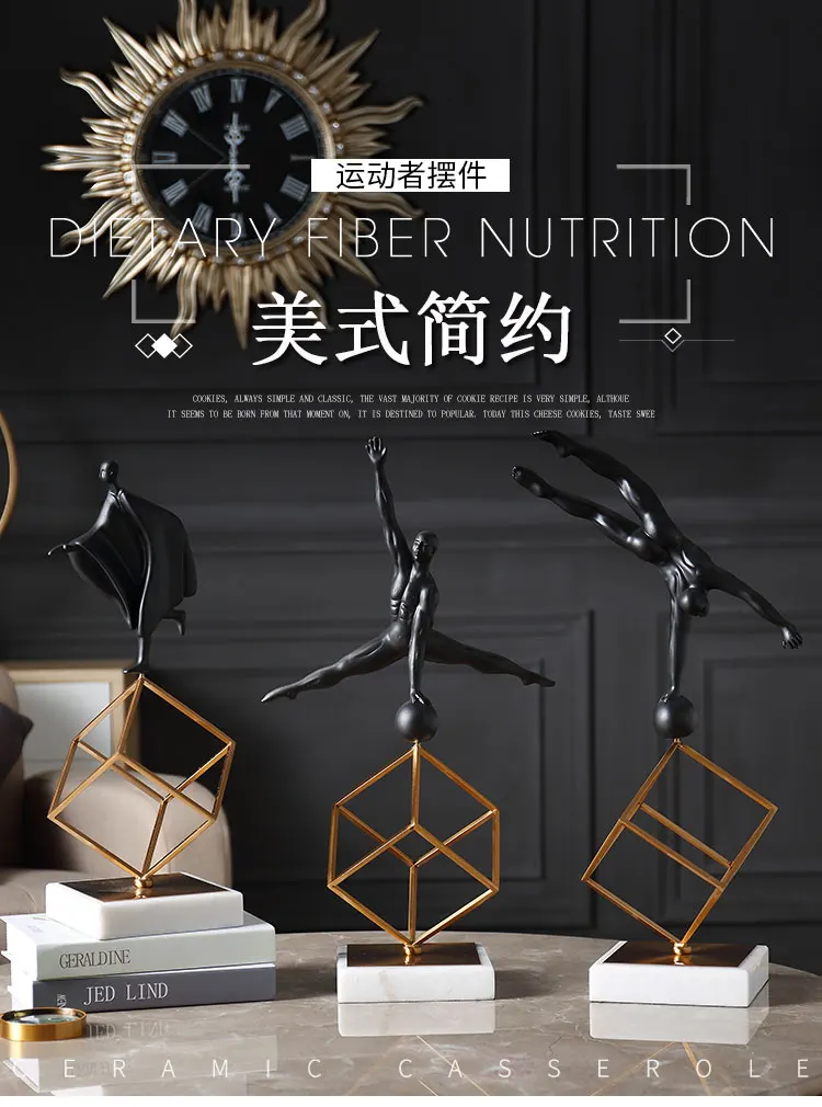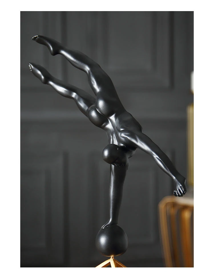 Абстрактная Спортивная Черная смола, гимнастические персонажи, статуэтка, креативное искусство, скульптура, белый мрамор, ручная работа, украшение для дома