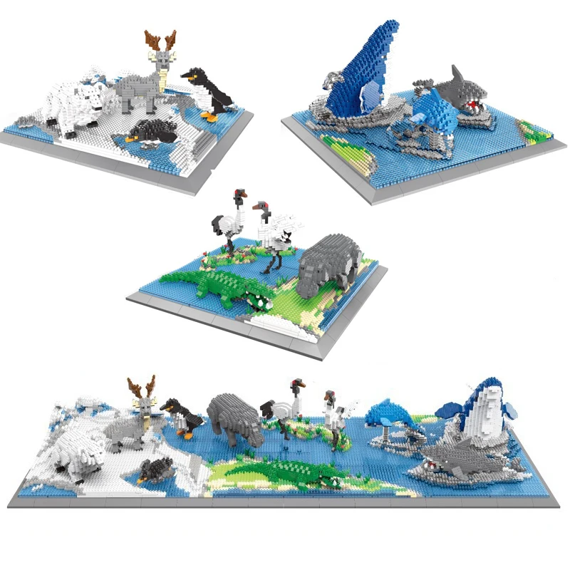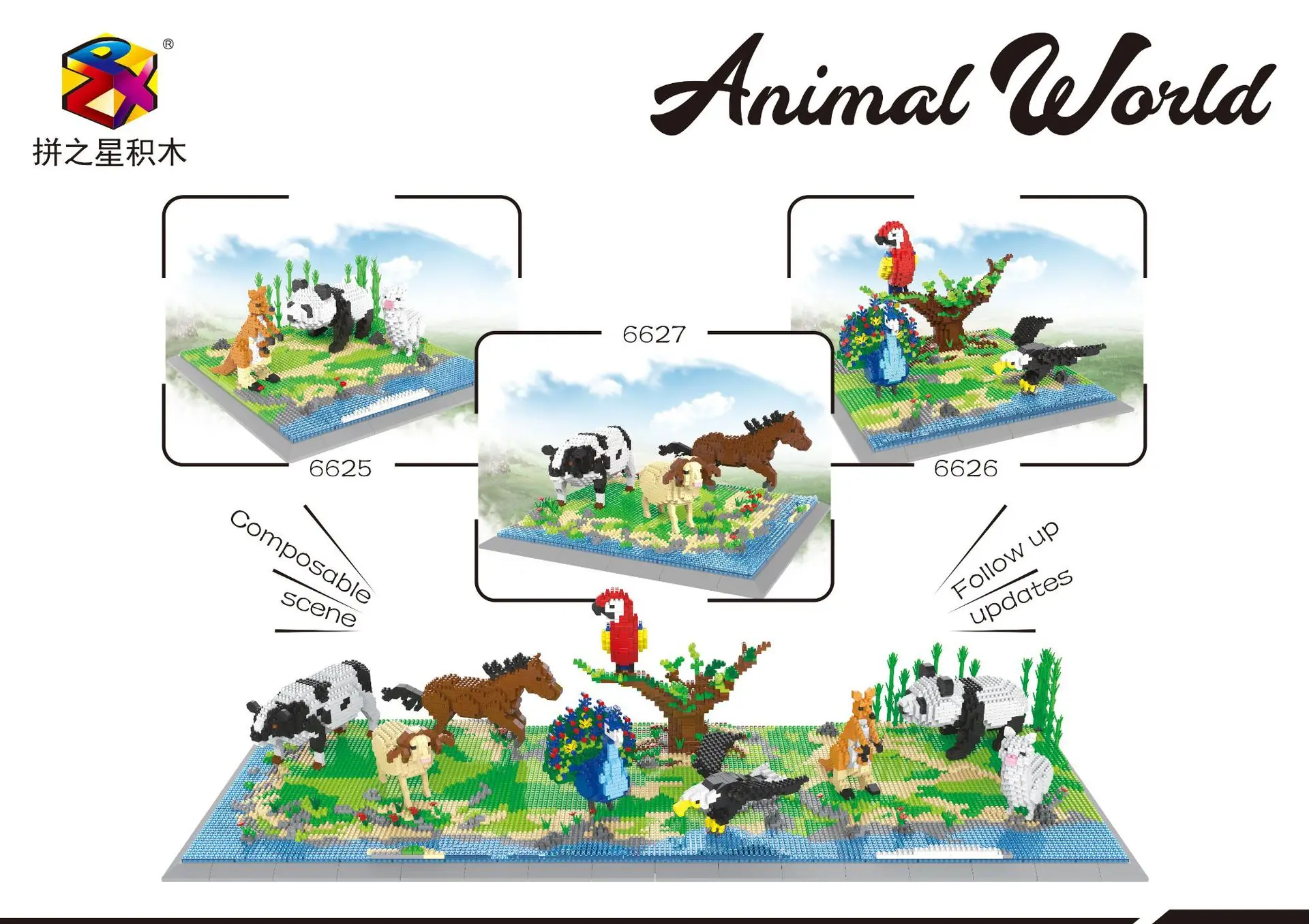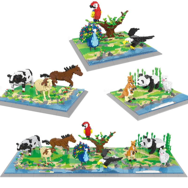 1950 шт. + животные, зоопарк, Обучающие строительные блоки, панда, кенгуру, попугай, Орел, луга, лошадь, корова, овца, мини-кирпичи, игрушка для детей, подарок