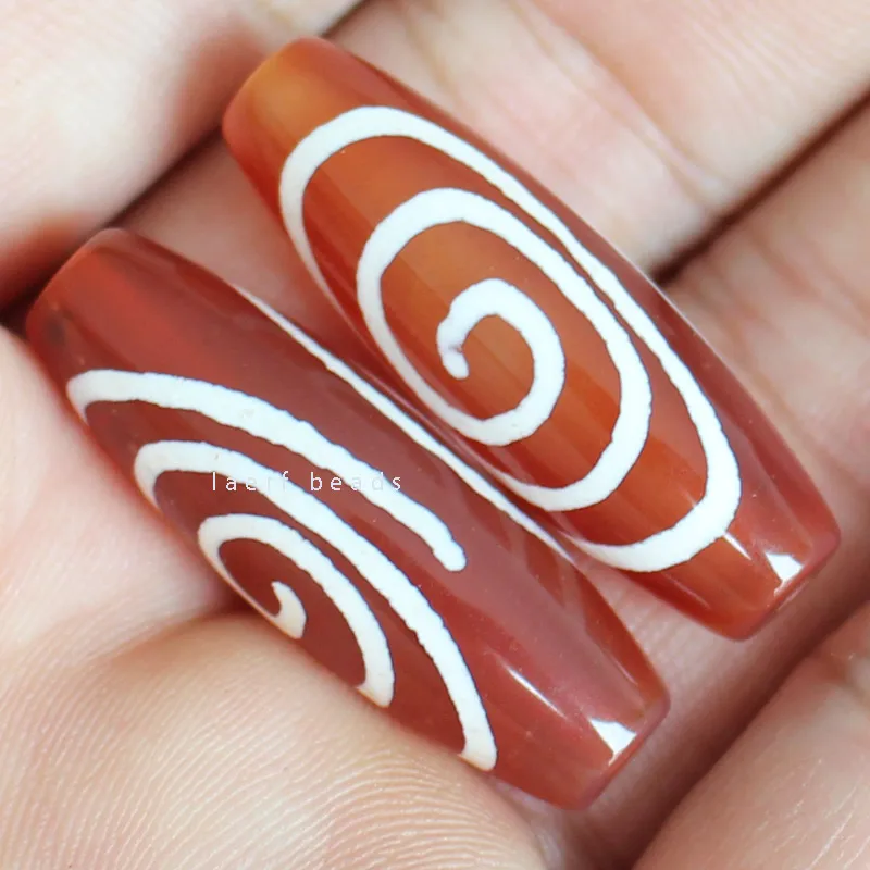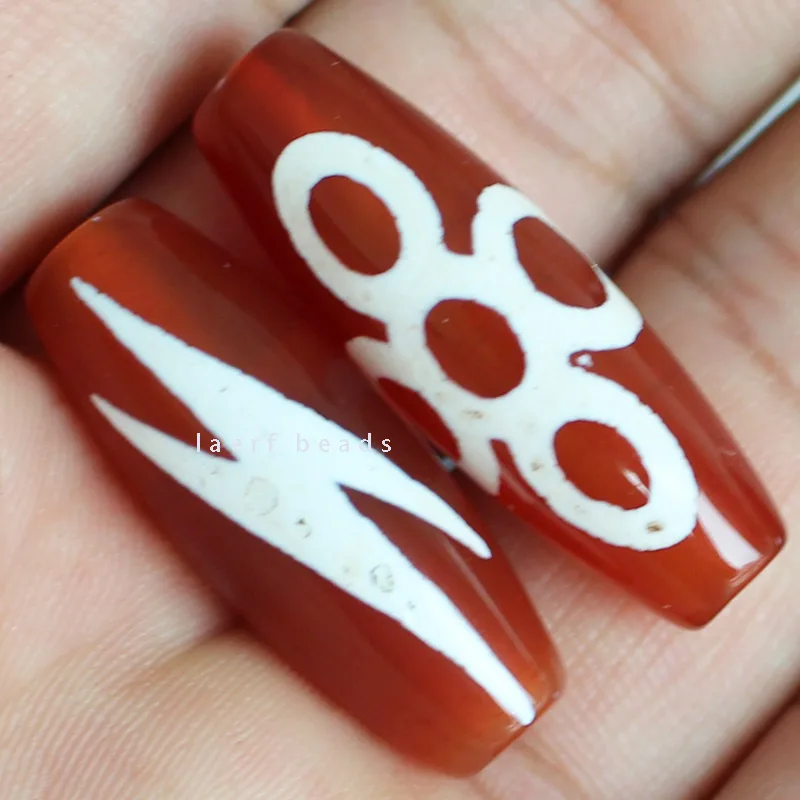 Бусины DZI 10x30 мм, красный Тибетский Агат, камень овальной формы, бусины россыпью, 1 шт.