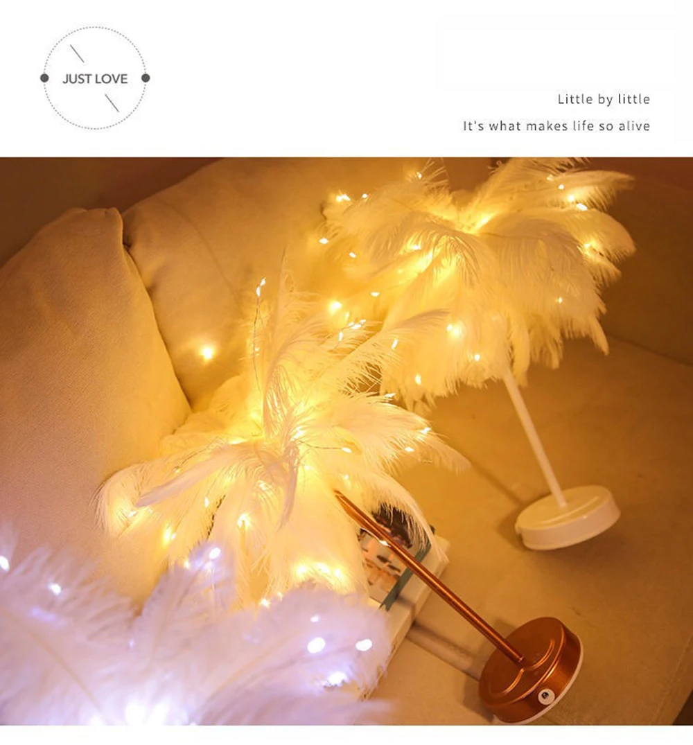 Светильник с перьями, светильник для комнаты, ночник