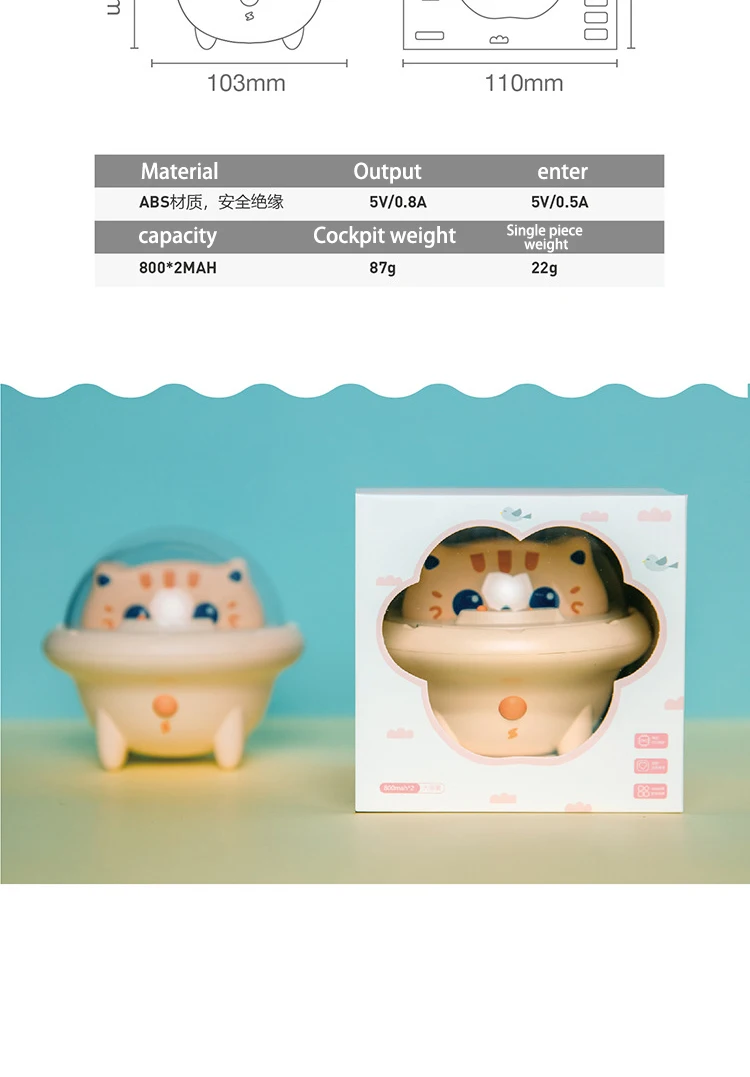 Рисунок: милый кот в космическом корабле. Мощность мини-портативного зарядного устройства: 800 мА · ч/шт. Вход: 5V 0.5A Выход: 5V 0.8A
