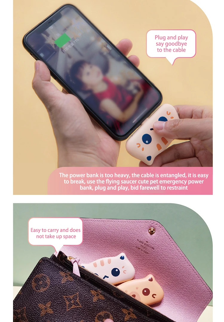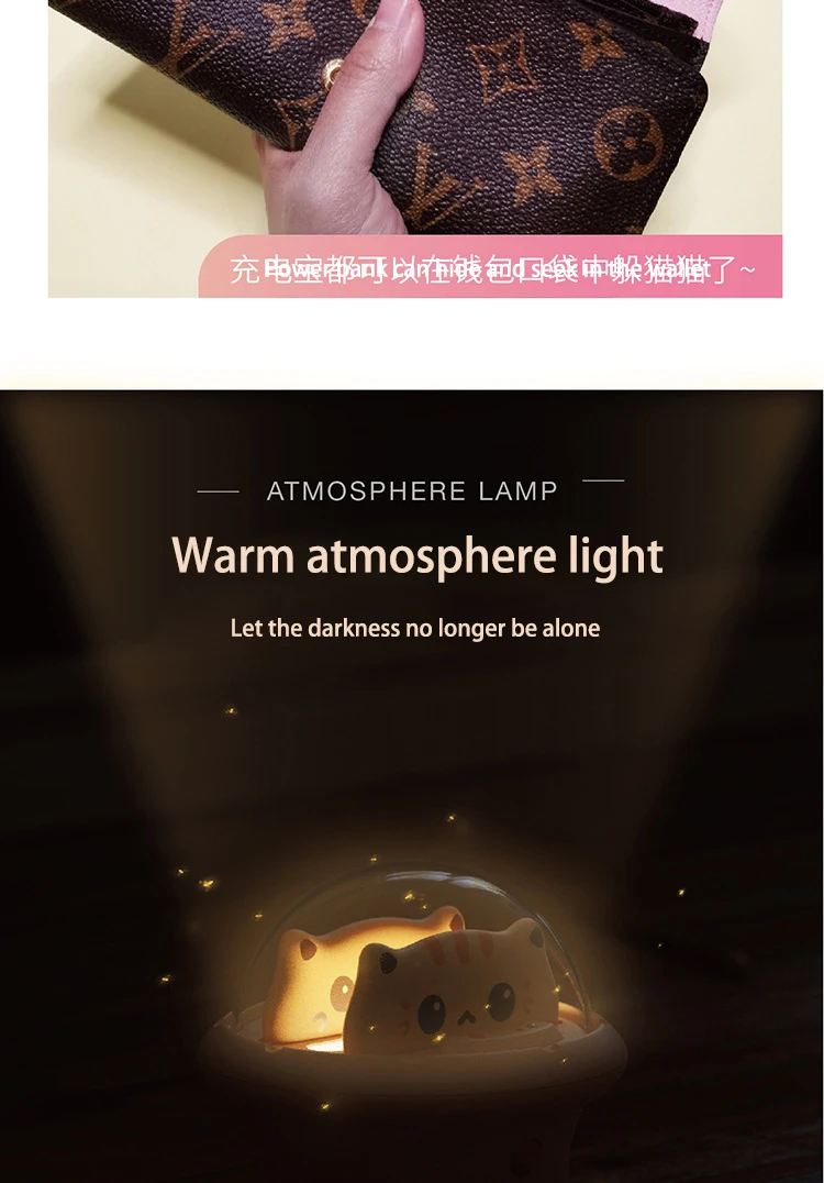 Мини-пауэрбанк 800 мАч с милым котом USBC, портативный внешний аккумулятор, чехол, зарядное устройство со светодиодным ночником для iphone маленького размера