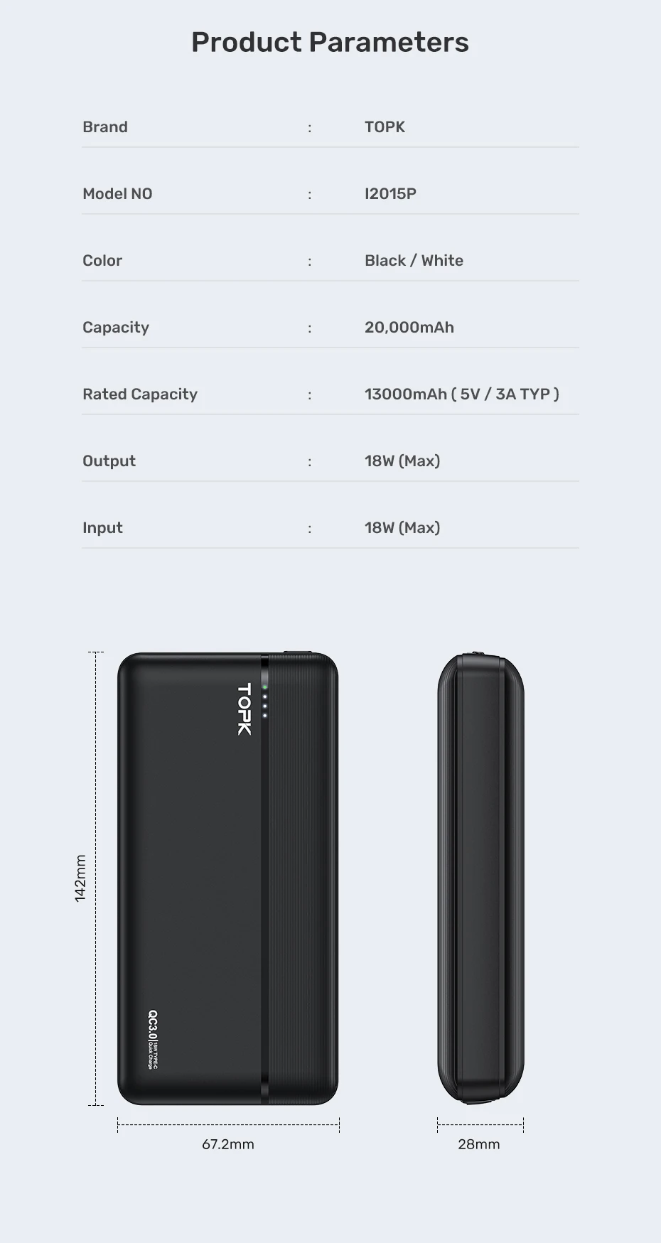 2. Power bank меченым core емкость составляет 20000 мАч/3,7 V, номинальной мощности is13000mah/5V.