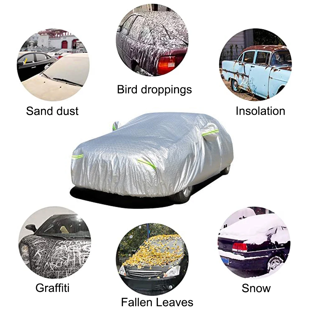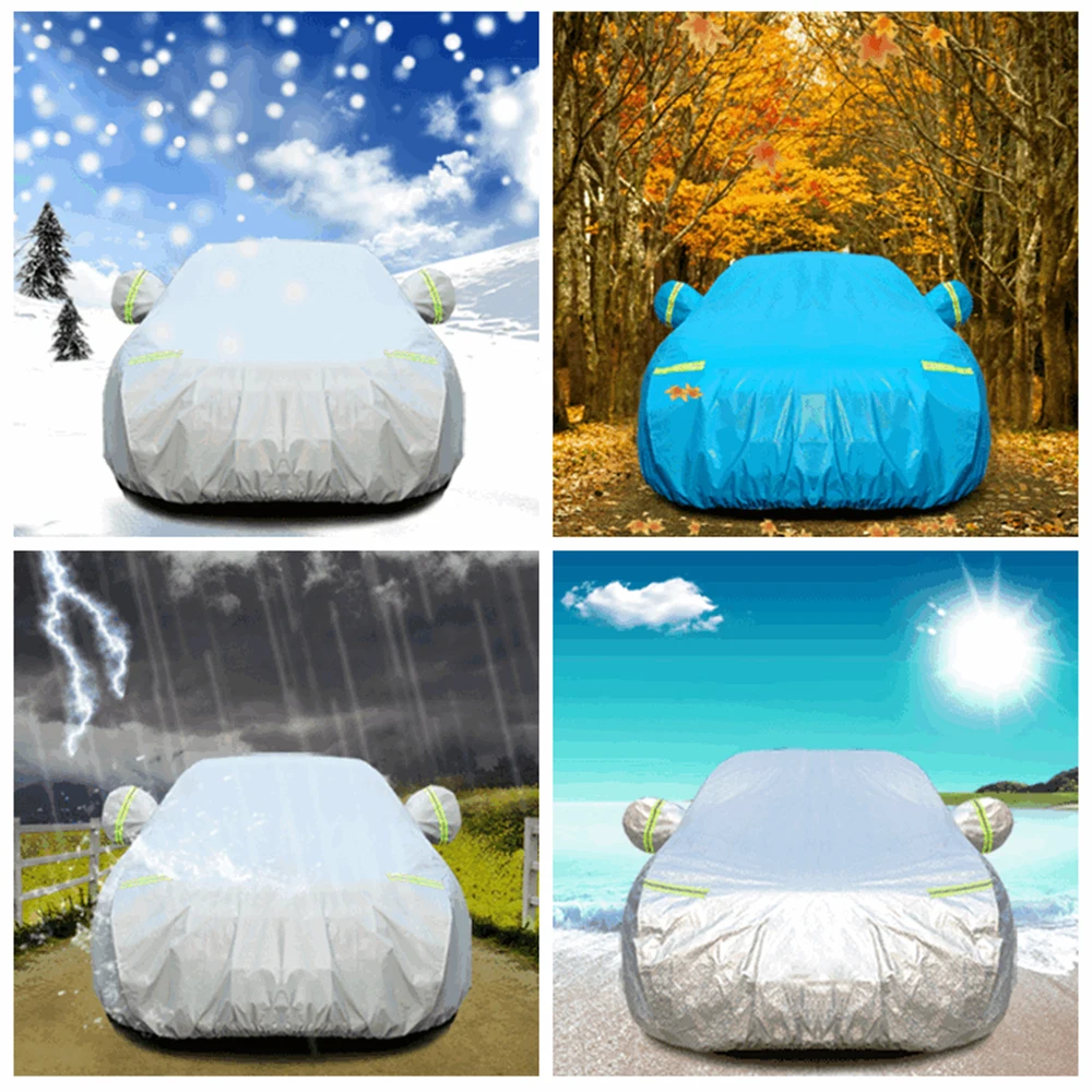 Крышка автомобиля может эффективно защитить ваш автомобиль от солнца, дождя, снега, грязи, пыли, листьев и птичьего помета, который может сохранить ваш автомобиль совершенно новым. (Полное покрытие)