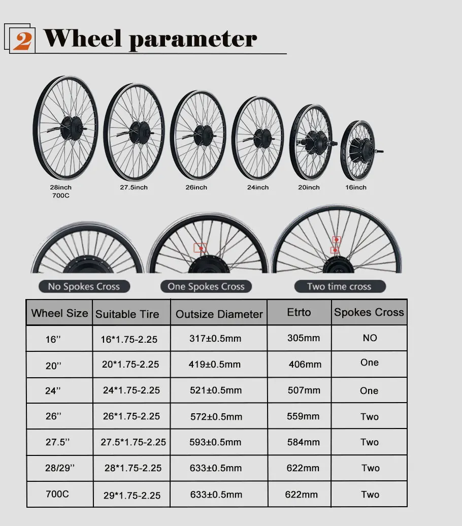 1. Передний двигатель/задний мотор 2. Размер обода: 20 ",24",26 ",700C 3. Дроссельная заслонка: большой палец/половина «ГАЗа»/поворот