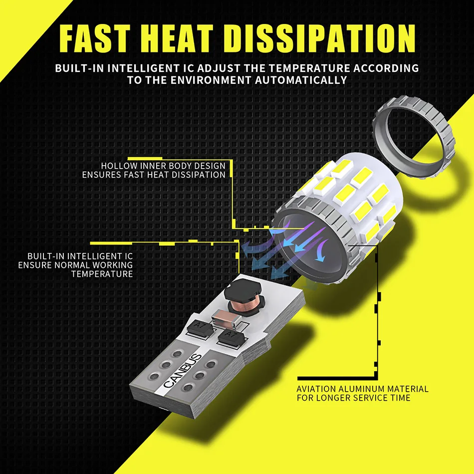 1. Canbus,Error Free,No Error 2. Super Bright with 30SMD 3014 Chips 3. Non-polar Design , Just install it directly Name: T10 W5W LED Bulb Material: Aluminium + LED LED Type: 30SMD-3014Chips LED Color: White,Blue,Red,Yellow Lifespan: up 50000+ hours Voltage: DC9-30V ( No for truck )