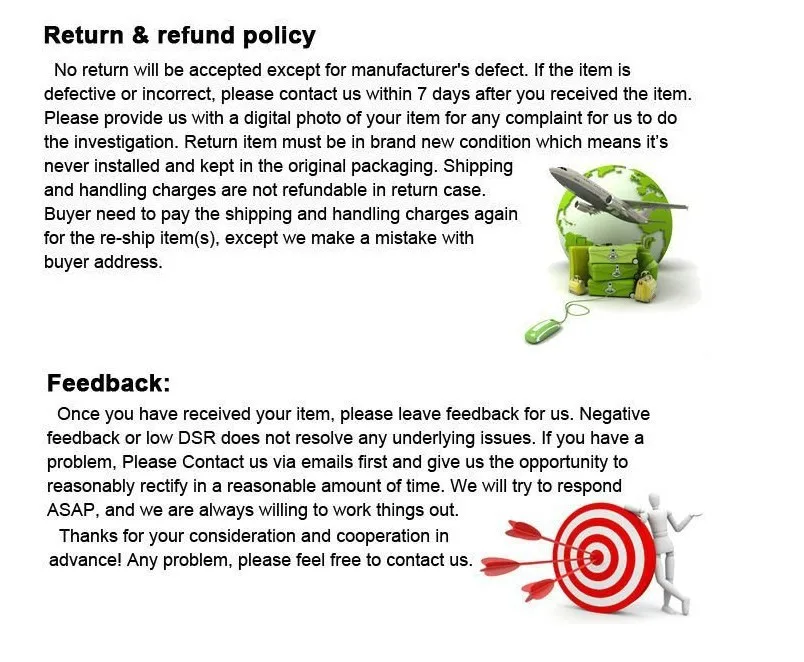 Если клиент ошибся в выборе неправильного кода no., не для проблем с качеством, без возврата, без возмещения!)