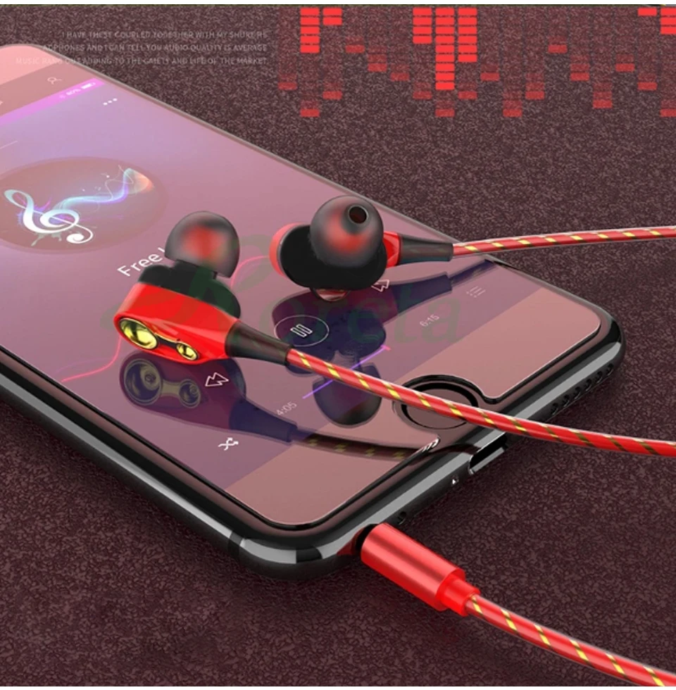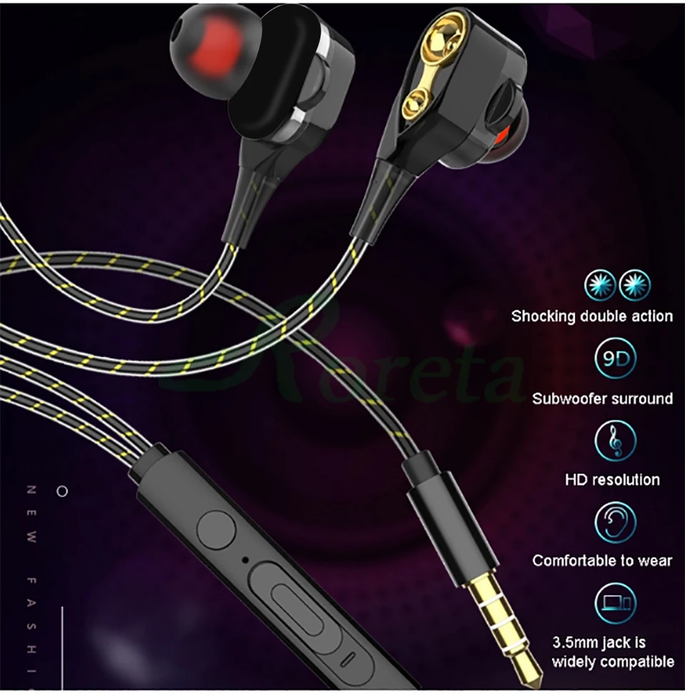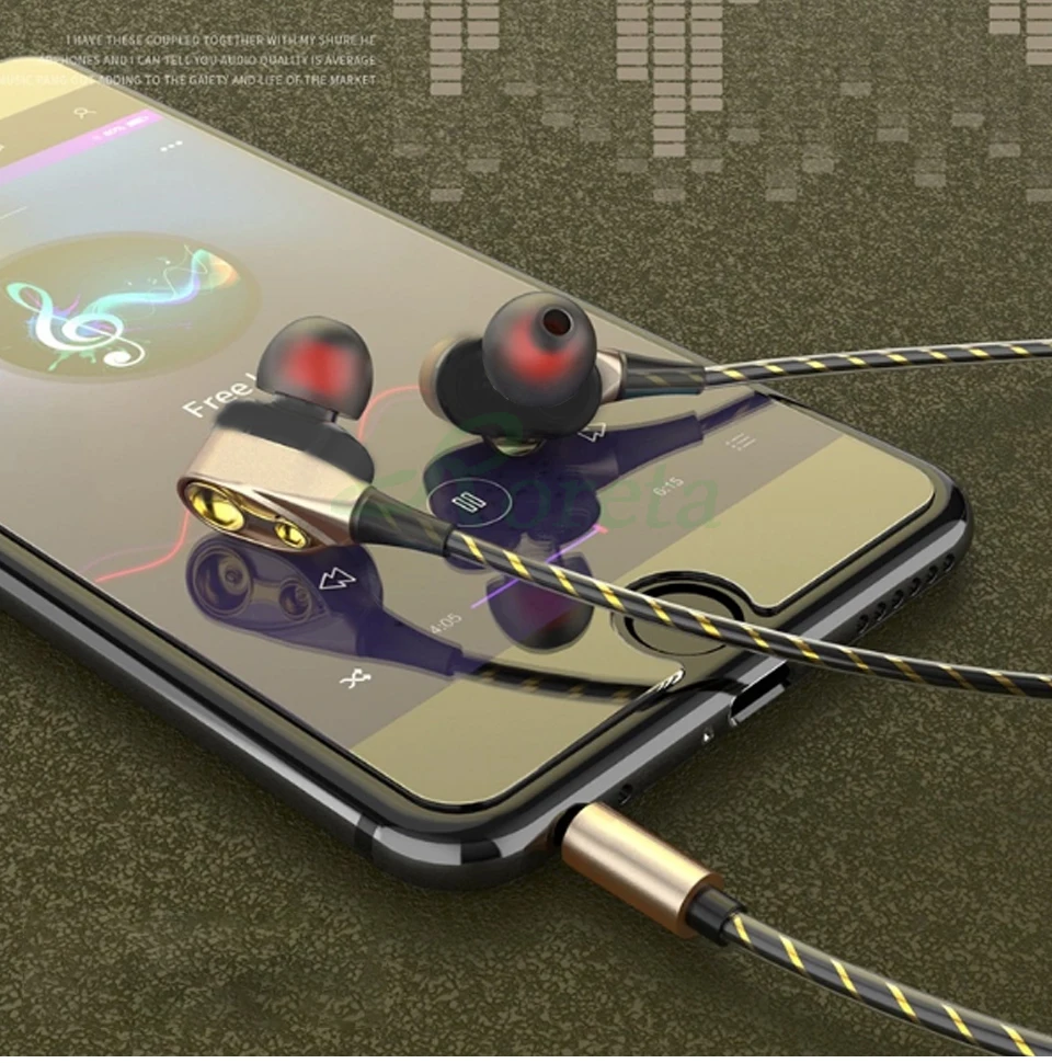 Roreta двойной драйвер стерео проводные наушники Универсальные 3,5 мм в ухо Спортивная гарнитура бас наушники с микрофоном для Samsung Huawei Xiaomi
