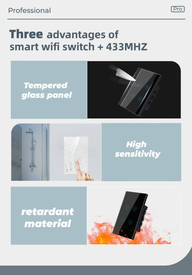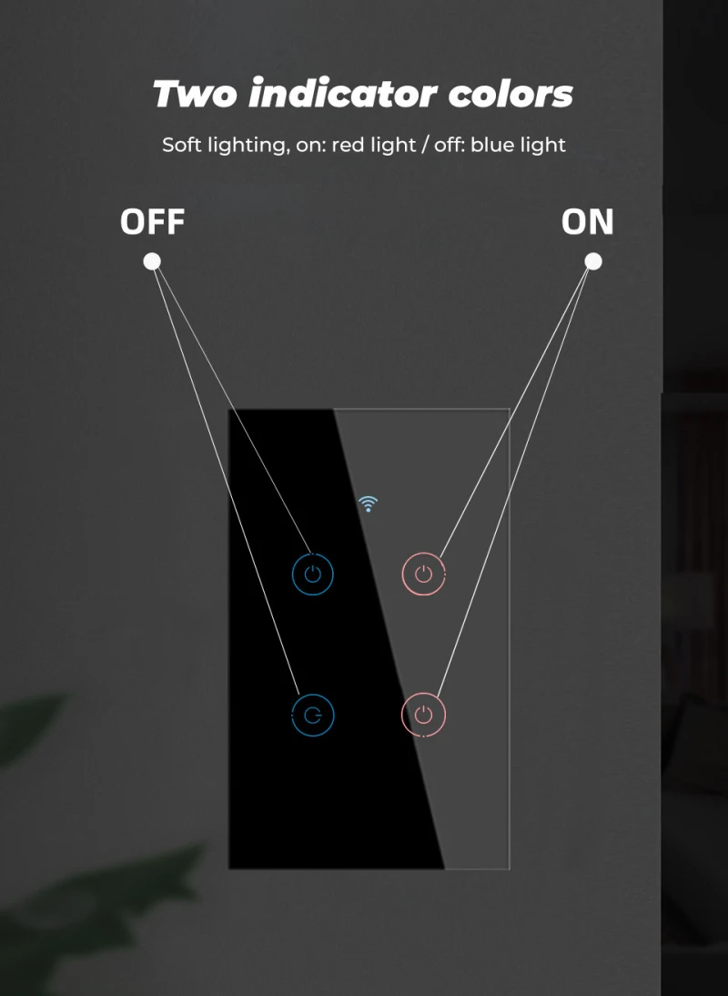 Стеклянный сенсорный экран этого Смарт-переключателя чувствителен к прикосновениям