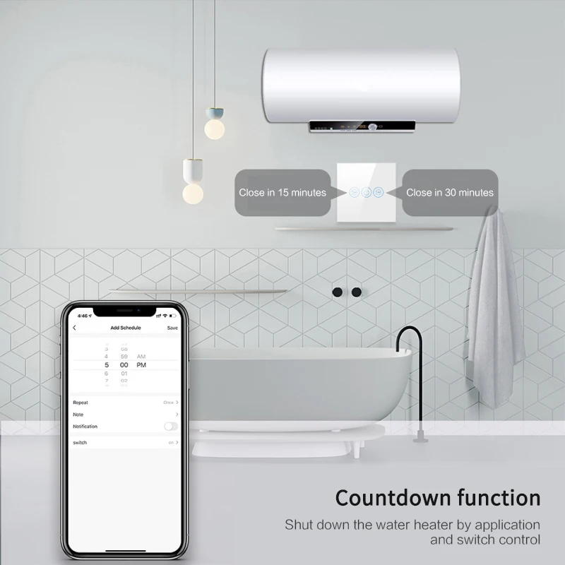 【Сроки,Запланированный/Обратный отсчет】Умный переключатель автоматически включается и выключается в данный момент времени через функцию таймера.Можно установить таймер запланированного/обратного отсчета для включения/выключения в указанное время