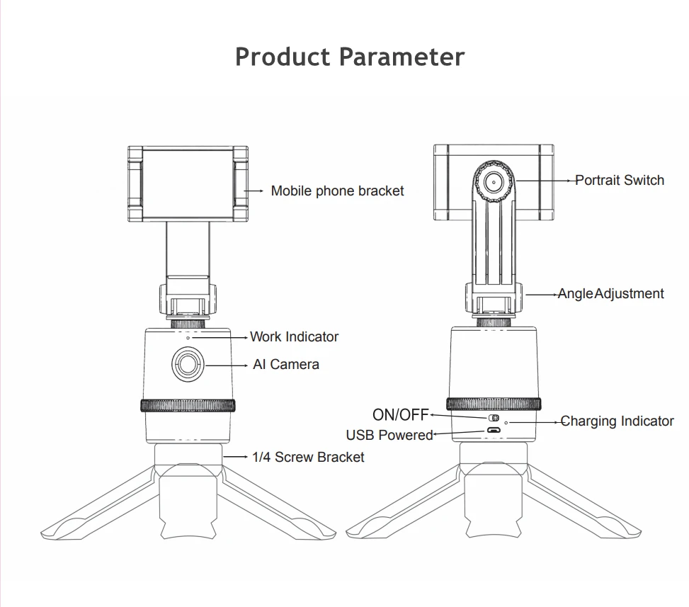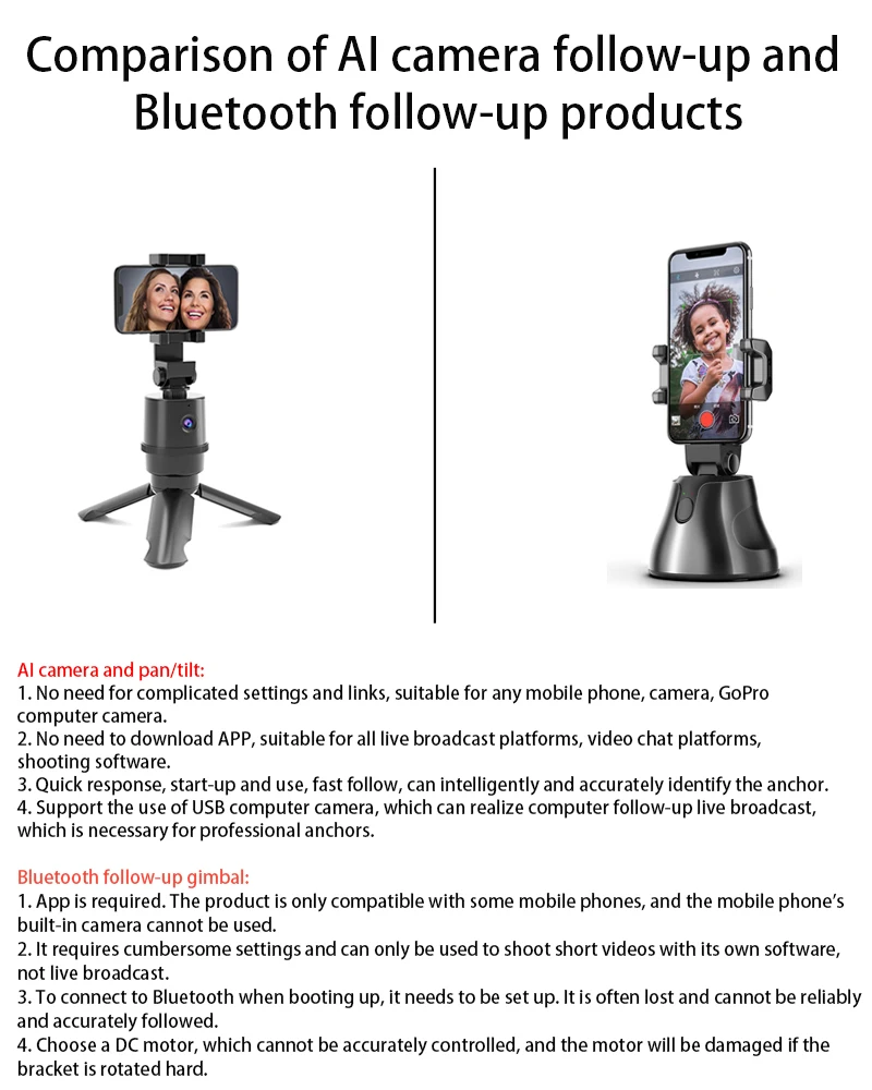 Штатив для селфи с поворотом на 360 градусов, держатель для отслеживания объекта, Стабилизатор камеры для фото Vlog Live Video RecordНет необходимости загружать приложение