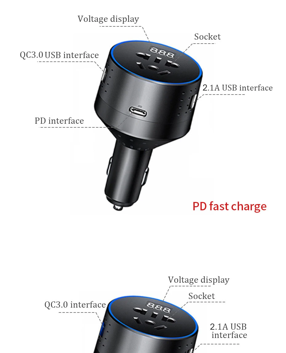 Вариант A: с одним зарядным портом 2,1 А, одним зарядным портом QC3.0, одним зарядным портом PD