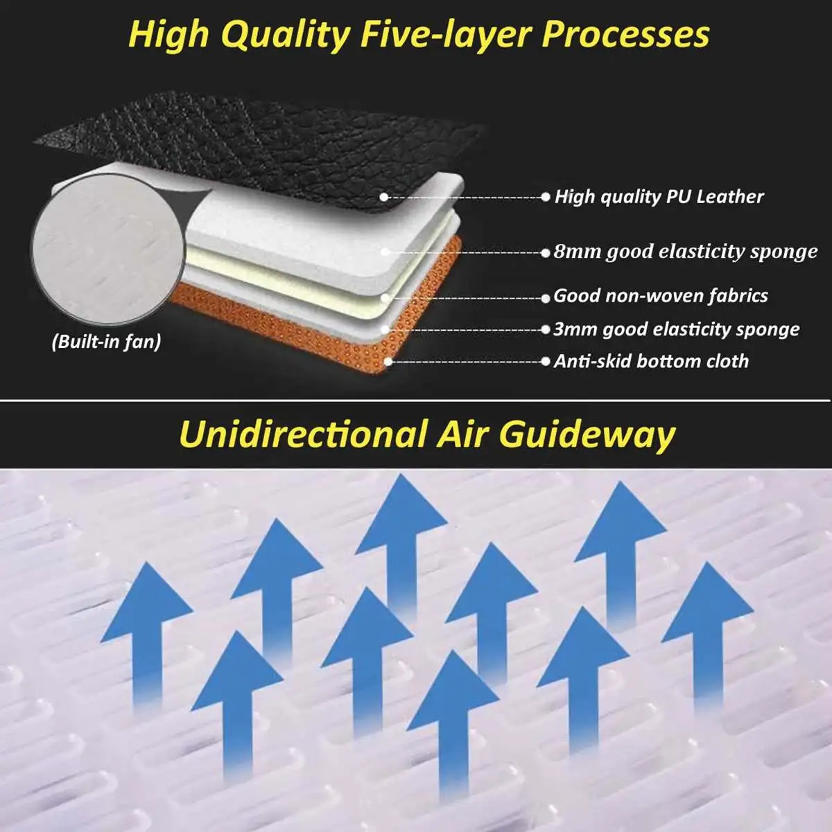 Уникальный дизайн-он может циркулировать воздух через крошечные пространства из микрофибры и сетчатых материалов и поместить свежий, дышащий слой между вашим телом и обивкой вашего автомобиля, кожей или винилом. Крышка сиденья согревает спину и дно, что помогает поддерживать обмен веществ и кровообращение. Наслаждайтесь мгновенным теплом на сидении и обеспечивает успокаивающее тепло не только для ваших уставших и больных мышц.