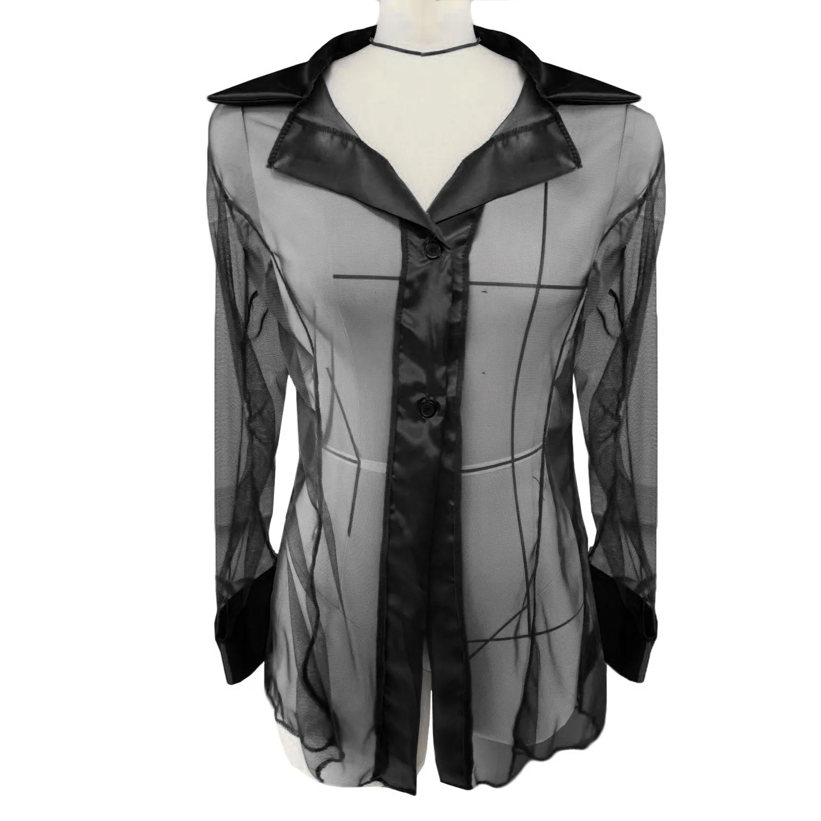 Новая сетчатая рубашка для женщин, сексуальное нижнее белье с длинным рукавом, пижамы, красные топы, S-3XL