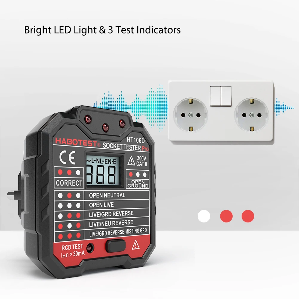 Нужно проверить проводку дома и проверить полярность подключения розетки? Нужно проверить утечку? Попробуйте наш HABOTEST тестер гнезда. Это профессиональный тестер гнезд, который быстро определяет, является ли соединение провода гнезда правильным или нет. С функцией тестирования RCD, это более практично и безопасно.