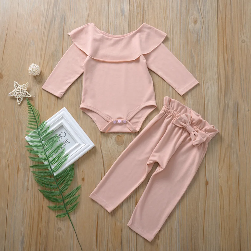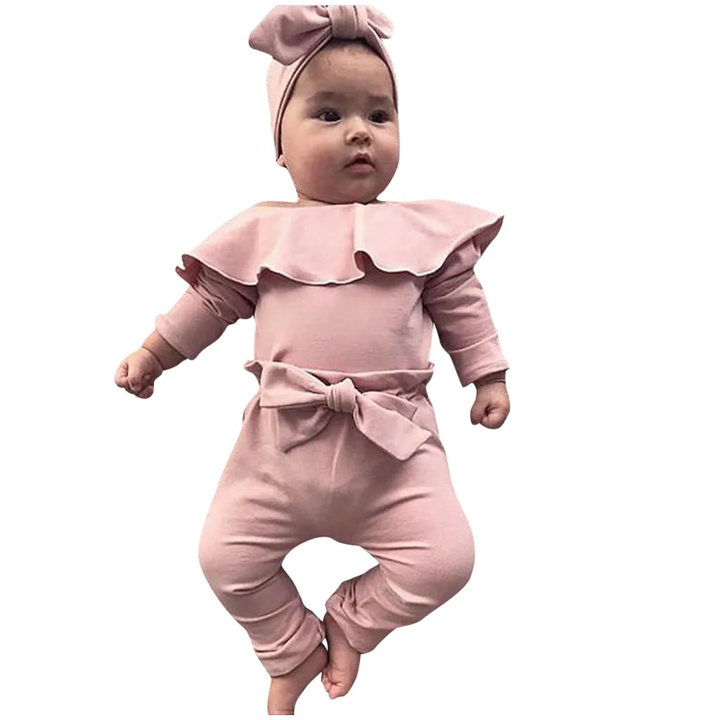 Цельный комбинезон с оборками для новорожденных девочек; Боди с бантом; Штаны; Одежда