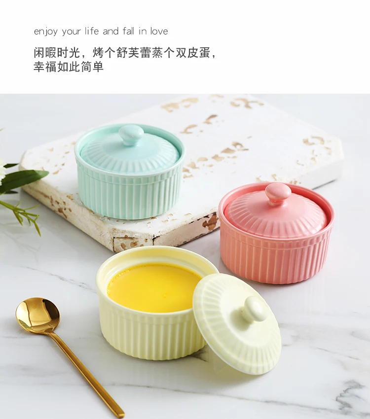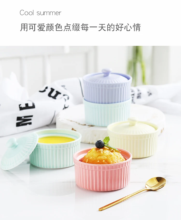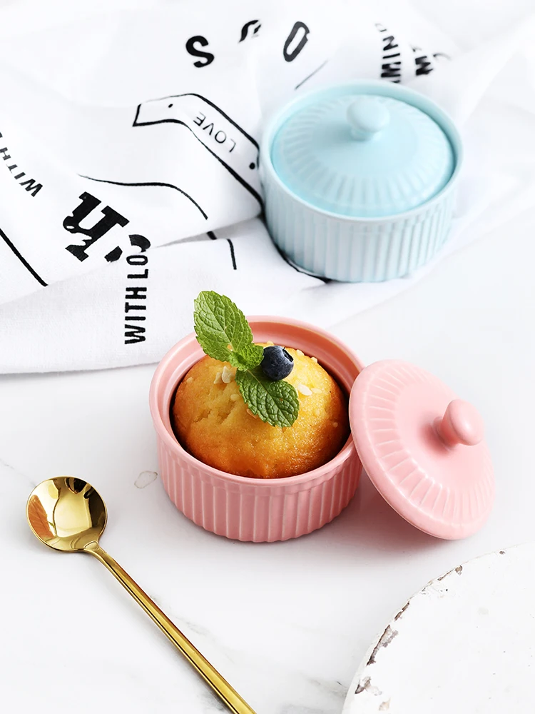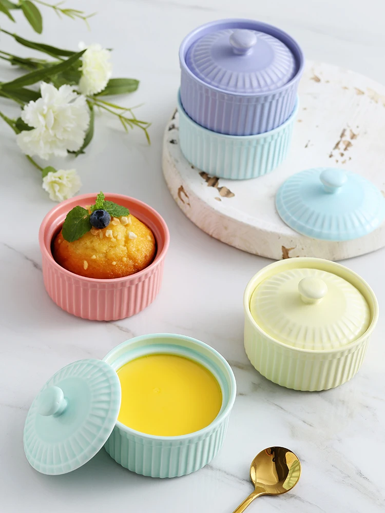 2 шт/6 шт керамическая круглая миска для выпечки с крышкой для выпечки Бытовая Милая высокотемпературная духовка десертная тушеная миска для яиц