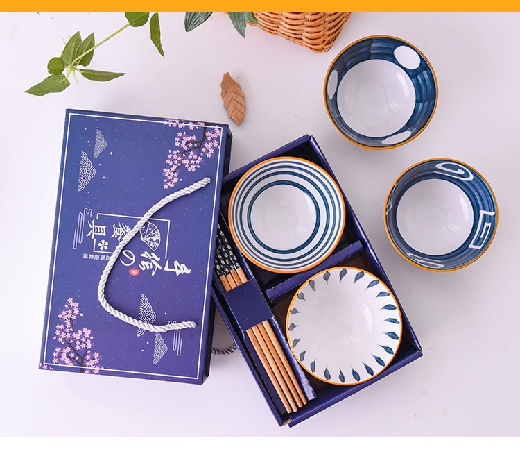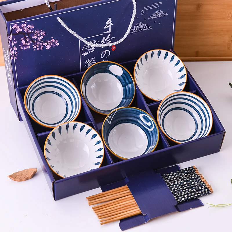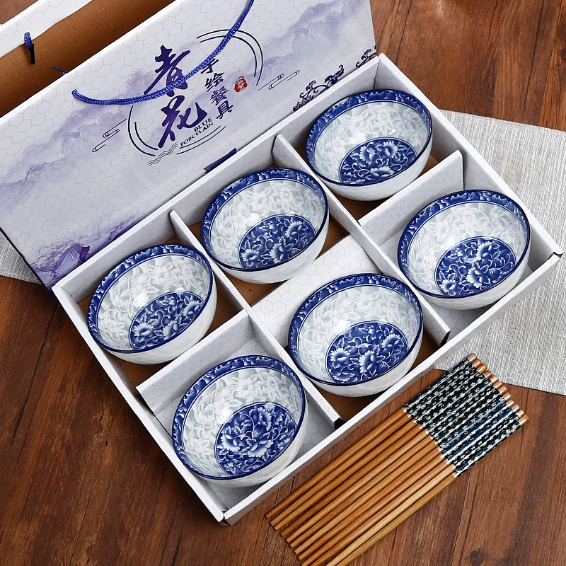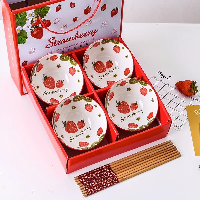 2/4/6 комплектов керамической круглой посуды в форме клубники, сине-белая фарфоровая чаша, керамическая чаша, Подарочная коробка, наборы обеденных чаш
