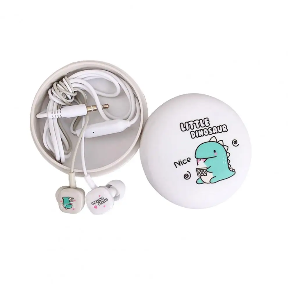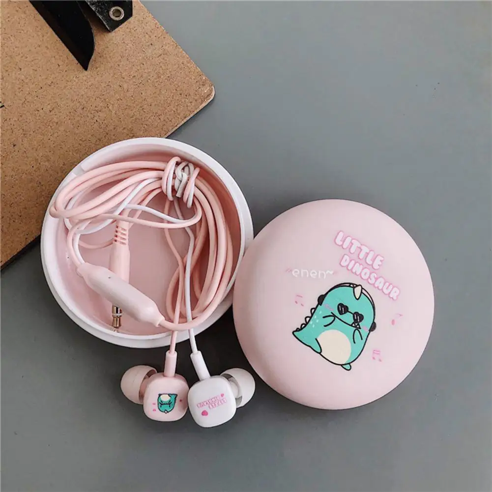 Универсальные наушники с милым мультяшным динозавром, проводные стереонаушники с футляром для хранения, наушники-вкладыши для дочери, детей и взрослых в подарок