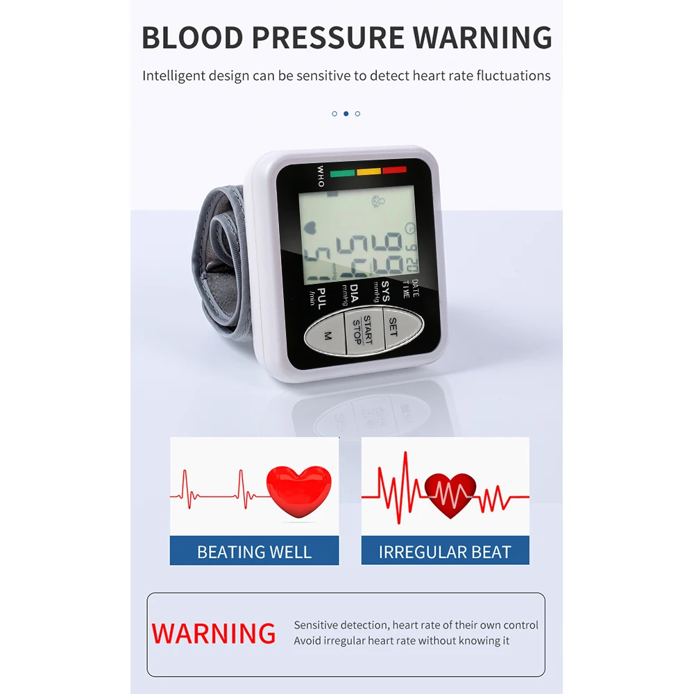 Этот наручный Монитор артериального давления с трехцветным индикатором светильник, быстро проверить состояние здоровья. ЖК-дисплей подходит для пожилых людей. Компактный размер, позволяет измерять в любом месте и в любое время.