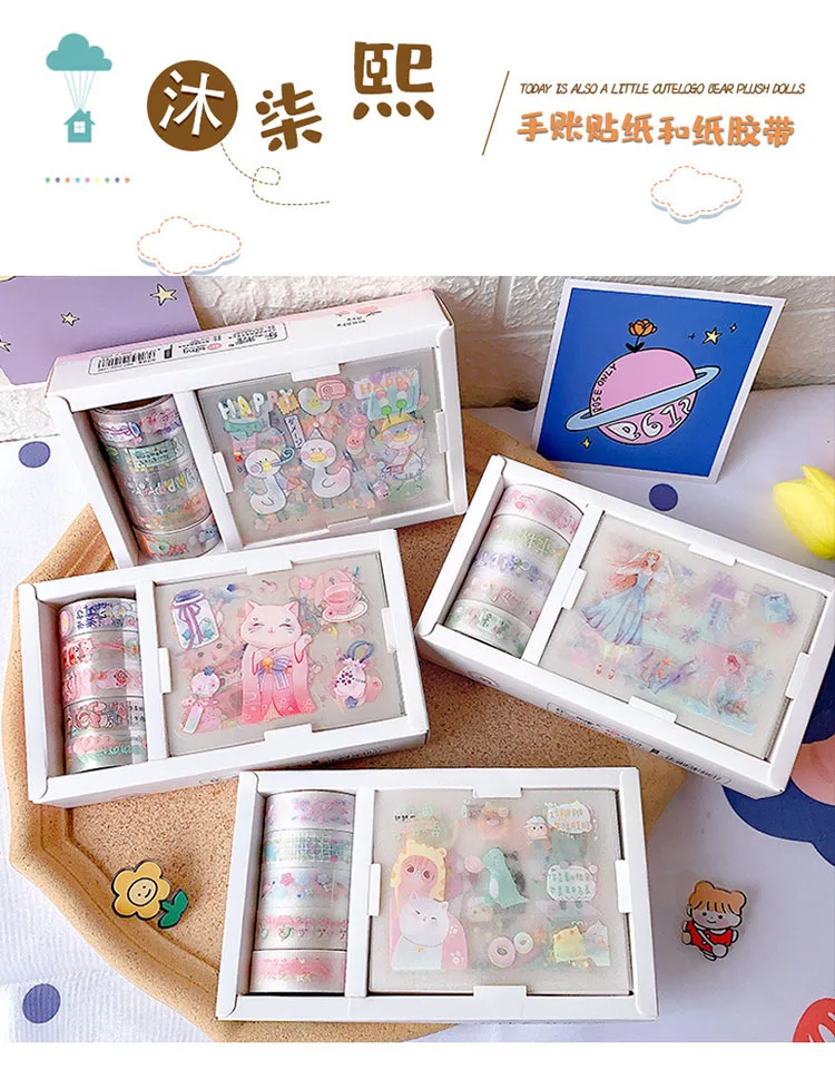 5 шт. васи лента 8 шт. наклейки для журналов милые школьные принадлежности комбинированные кавайные Декоративные Канцелярские Принадлежности Набор декоративного скотча Васи